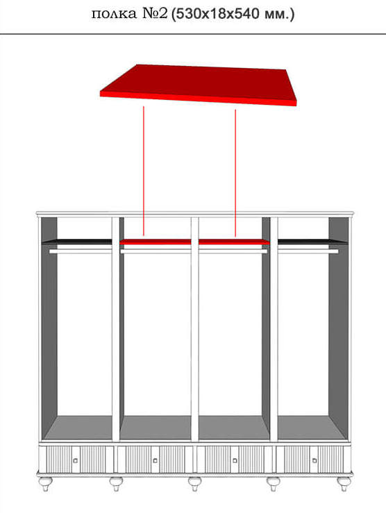 Внутренняя полка - длина 530 мм к шкафам - массив сосны.