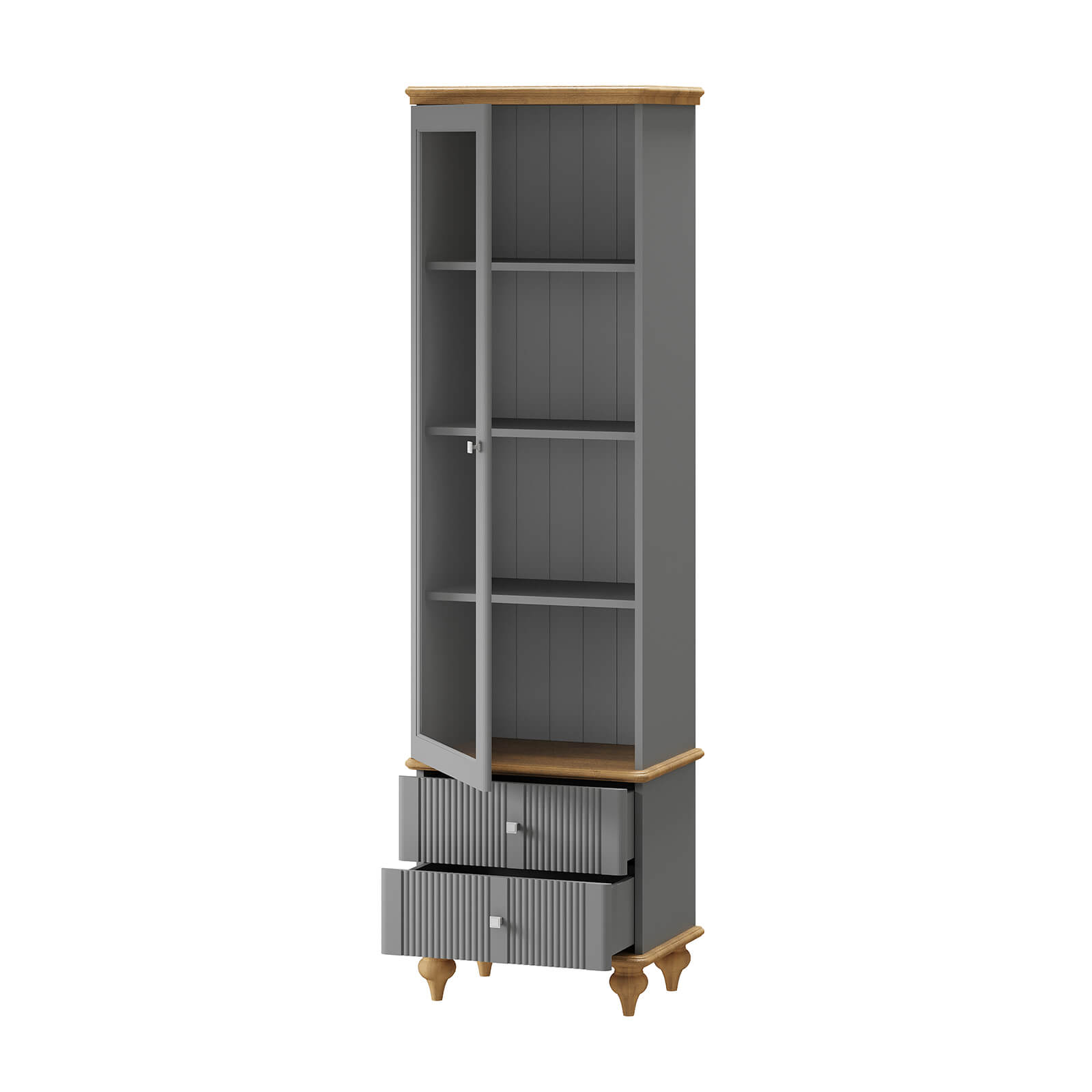 Шкаф для посуды Рандеву-12 МАССИВ СОСНЫ серый №7042 + антик №24 рис1