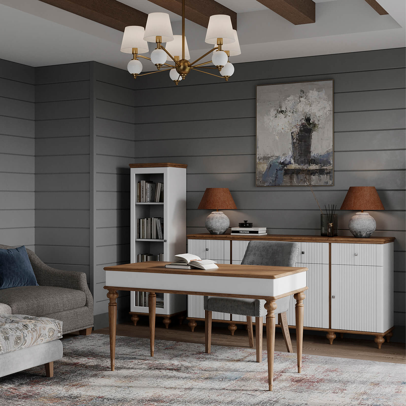Стол письменный Рандеву-003 МАССИВ СОСНЫ Белый лак + антик №24