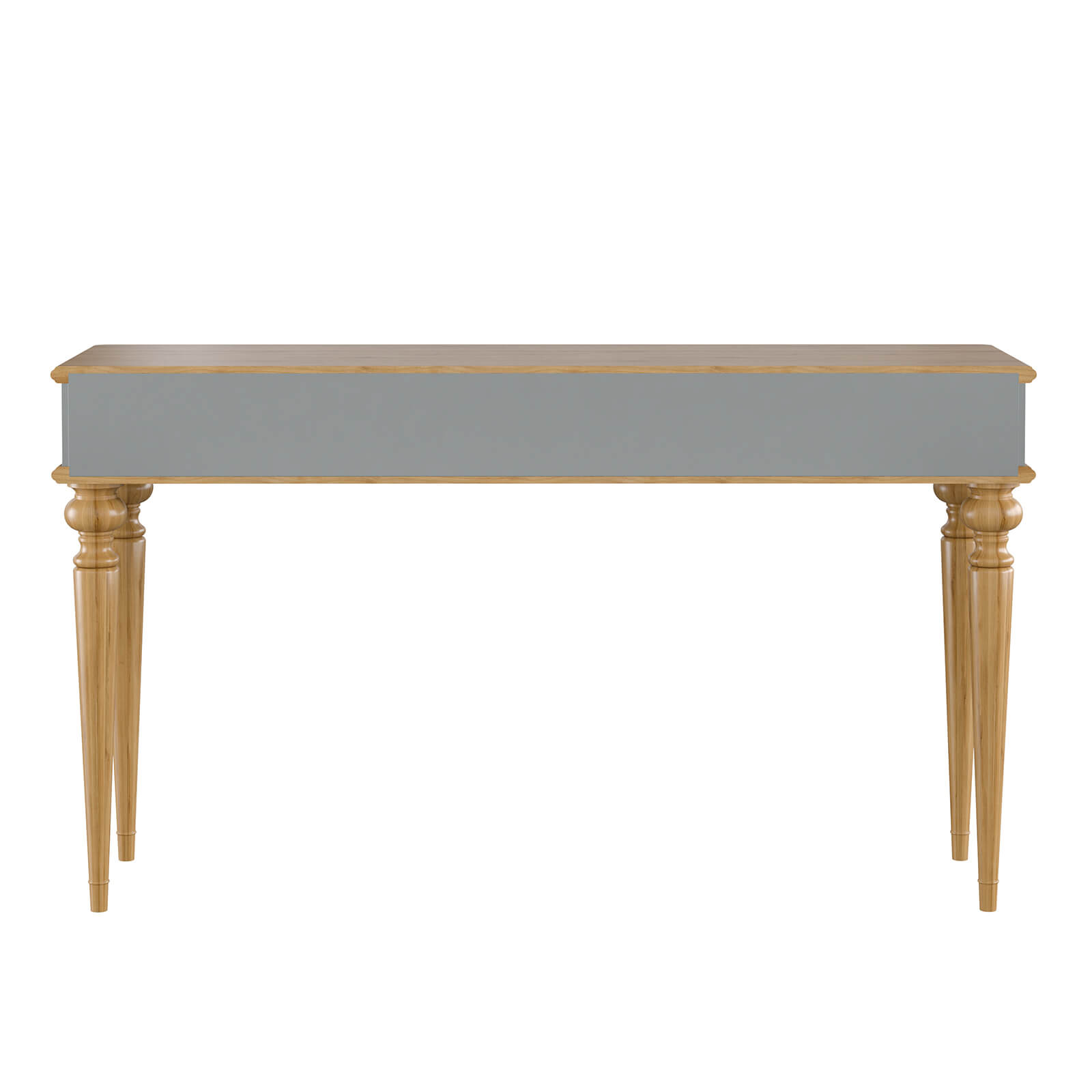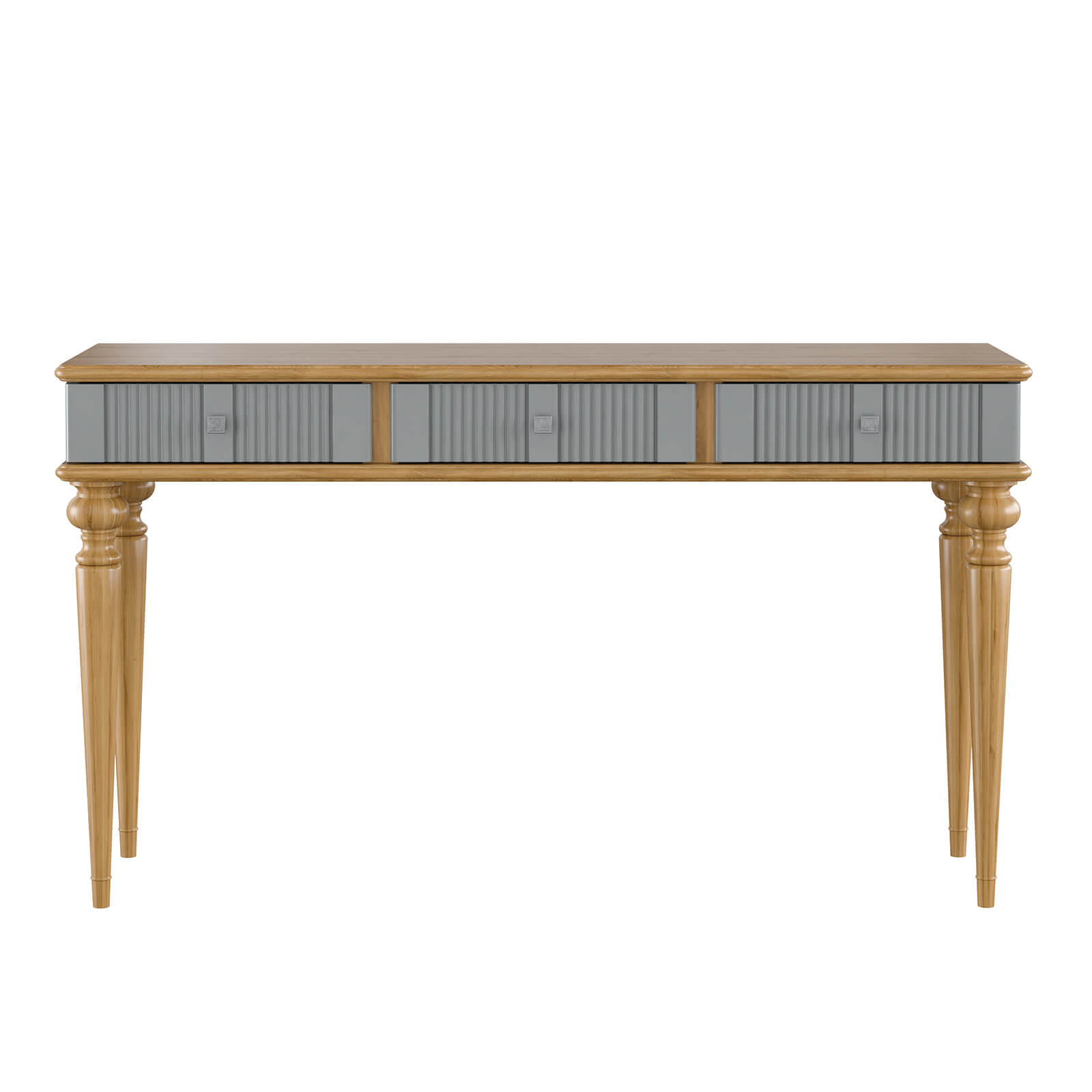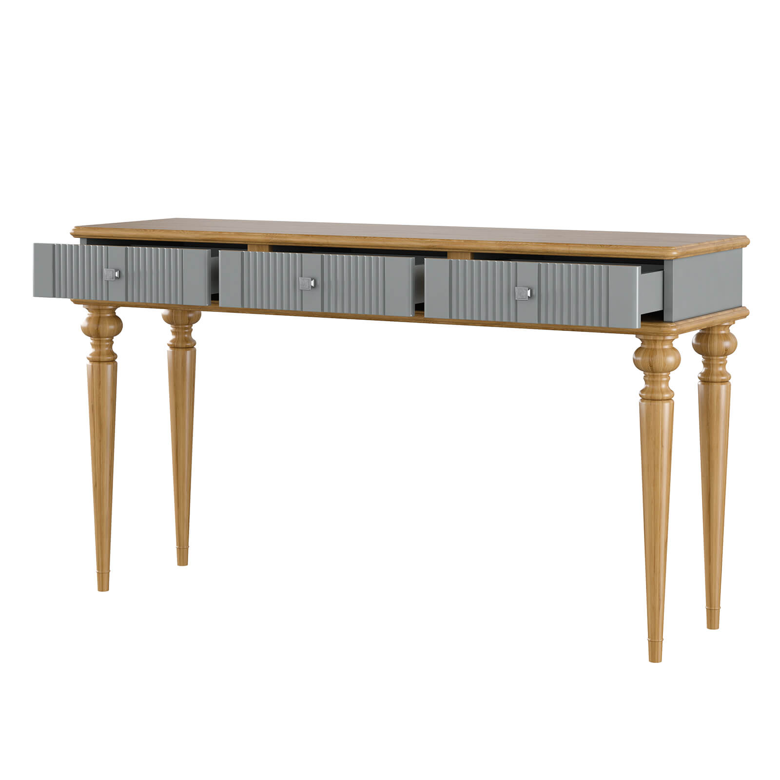 Стол туалетный Рандеву-03 МАССИВ СОСНЫ серый №7042 + антик №24 с тремя ящиками. Массив дерева. Покрытие корпуса - белый лак. Крышка консоли - воск антик.