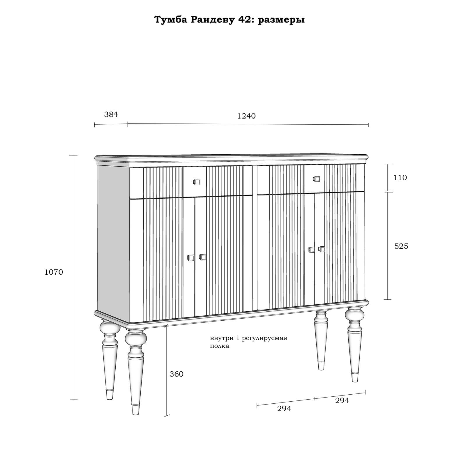 Тумба Рандеву-42 МАССИВ СОСНЫ Белый лак + антик №24 размеры