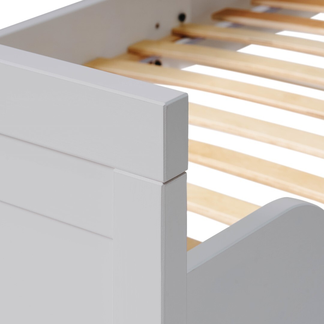 Высокое изголовье делает кровать комфортной для сидения, а высокое изножье предотвращает падение постельных принадлежностей на пол.