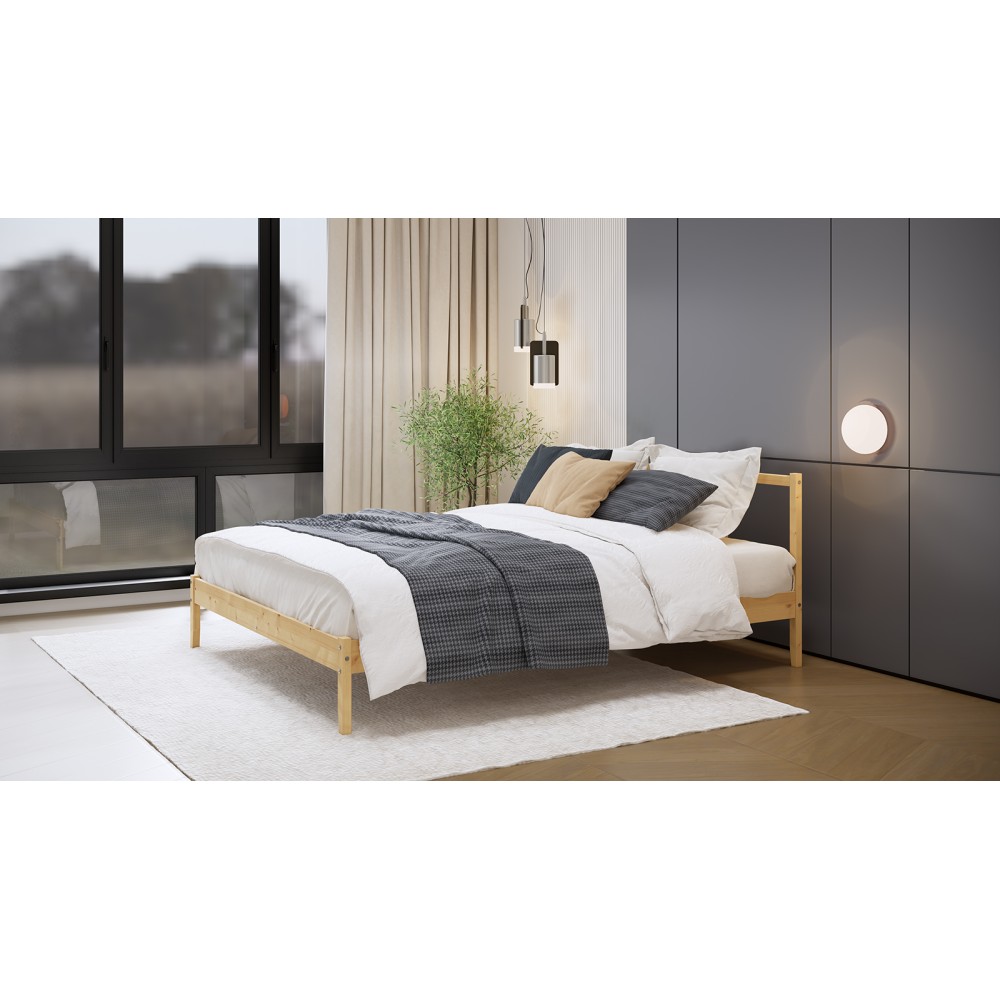 Деревянная Кровать 140х200 ФЬЕЛЬСЕ (УСКАР) - массив сосны. Настил под матрас в комплекте.