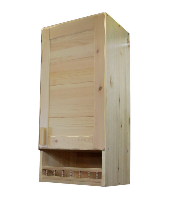 Шкаф настенный 1 дверь 300 с балкончиком массив сосны покрытие бесцветный лак.