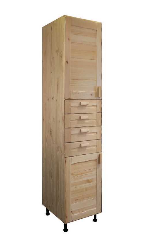 Шкаф-пенал кухонный 4 ящика 600 мм высота 2040 мм массив сосны покрытие бесцветный лак.За дверью вверху и внизу 1 полка.