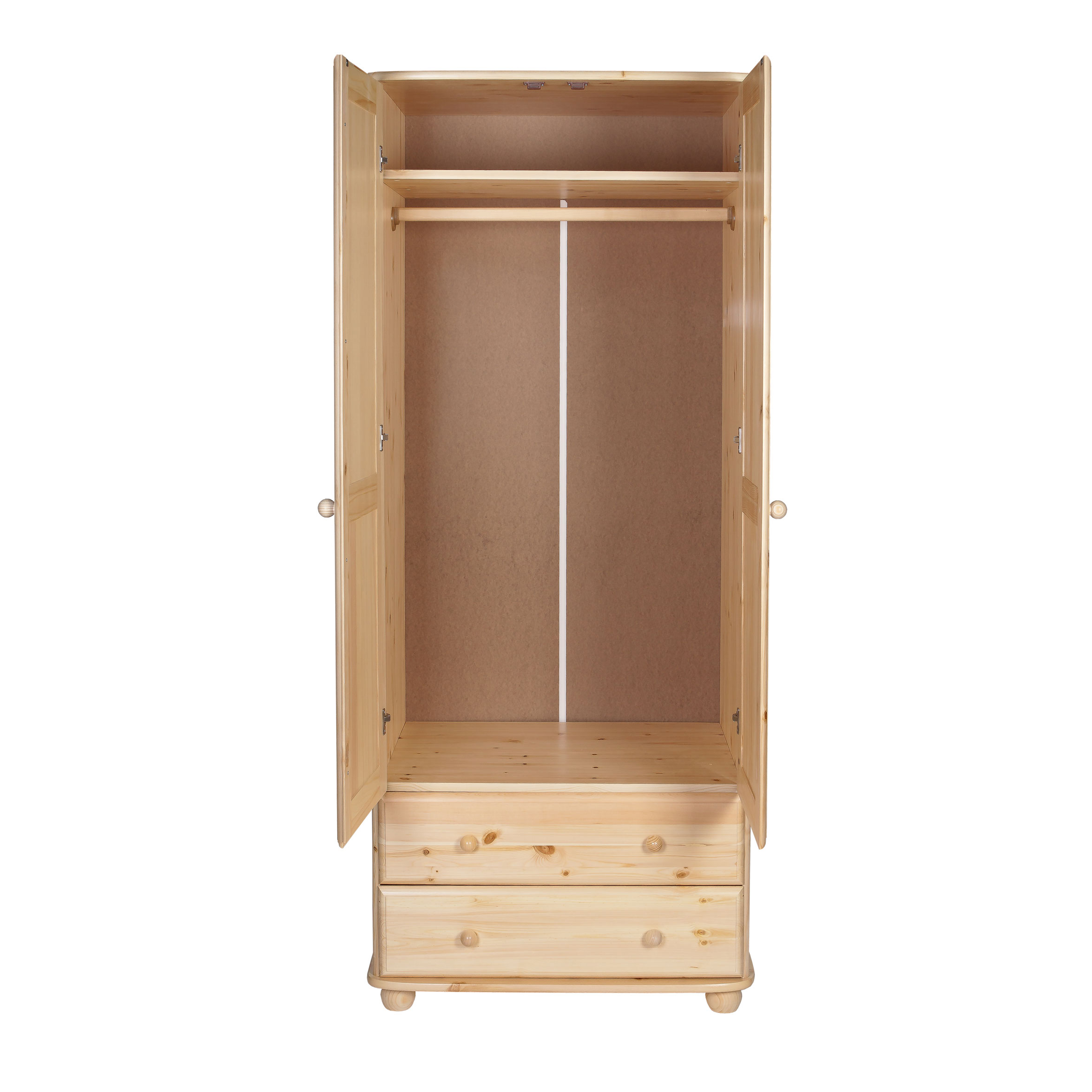 Платяной двухдверный шкаф Норд 122 из массива сосны в прозрачном лаке - платяной - с полкой и штангой для вешалок.