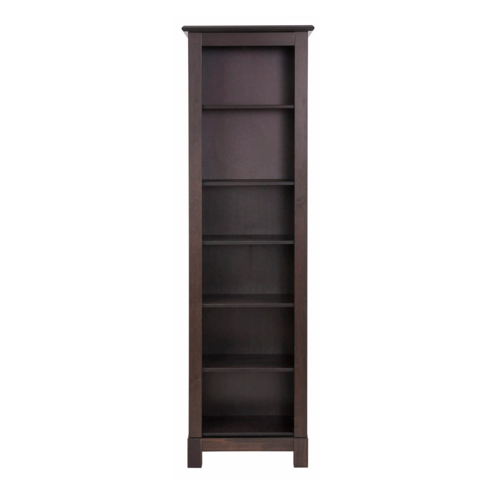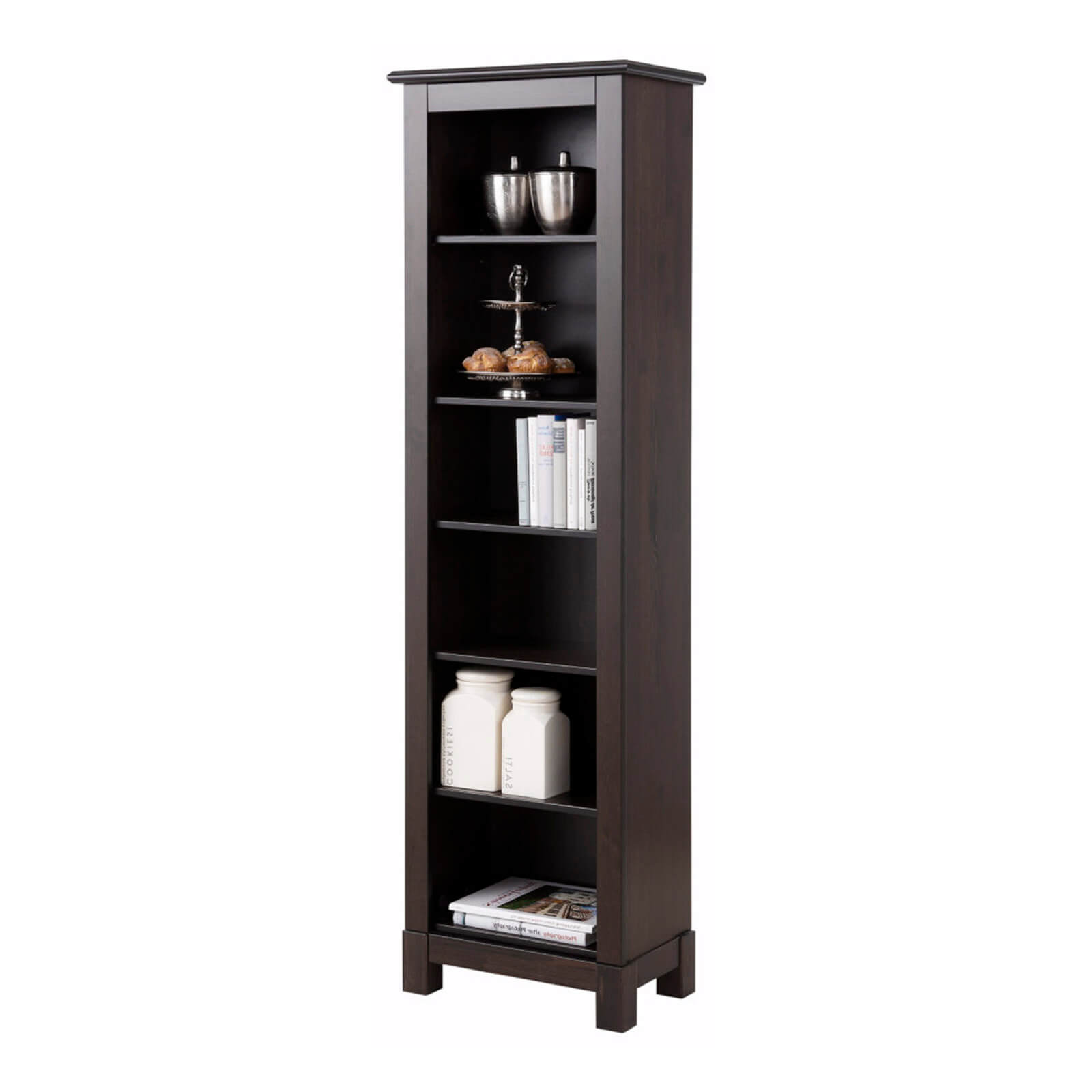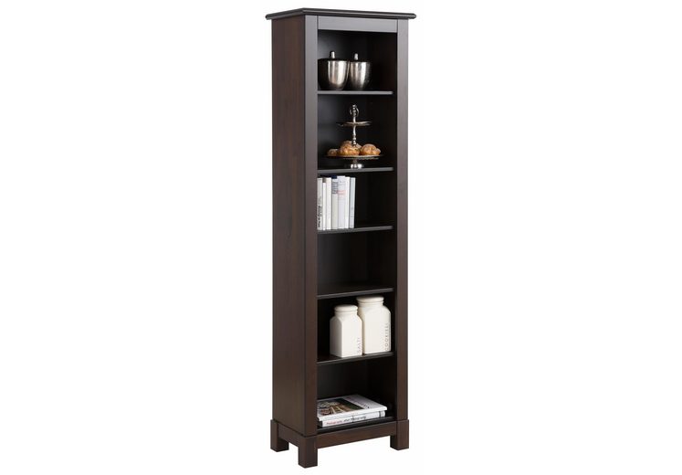Узкий деревянный книжный шкаф Рауна -00 в отделке (колониал) возможно использовать также как стеллаж для хранения домашних коллекций.