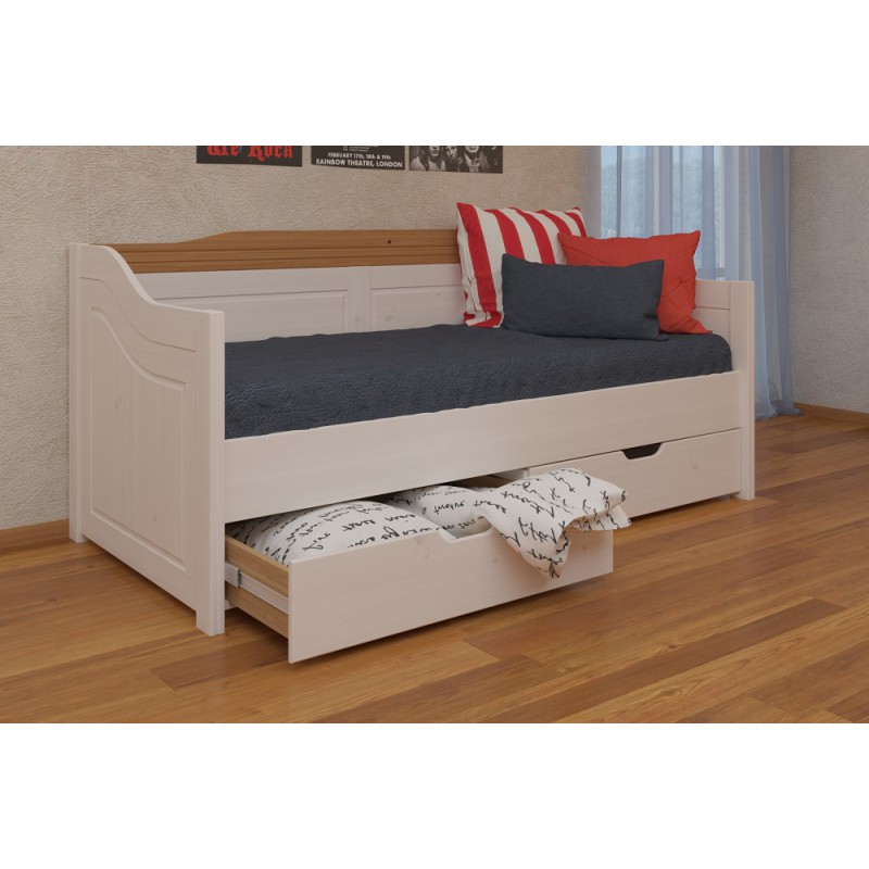 Кровать с выдвижными ящиками Бейли антик , которую можно легко использовать и в качестве дивана для посиделок в гостиной дружной компании., решетка из ламелей сосны под матрас в комплекте.