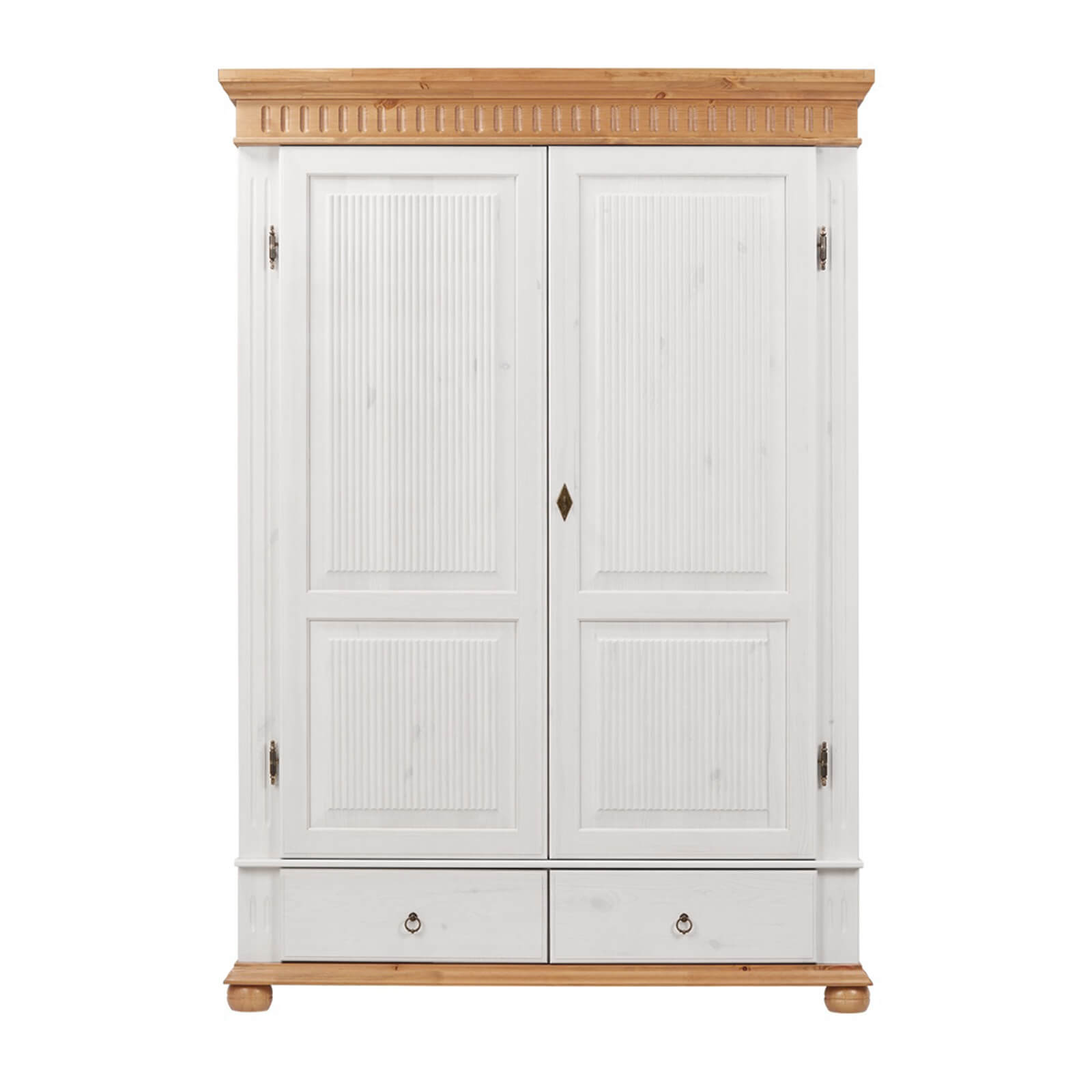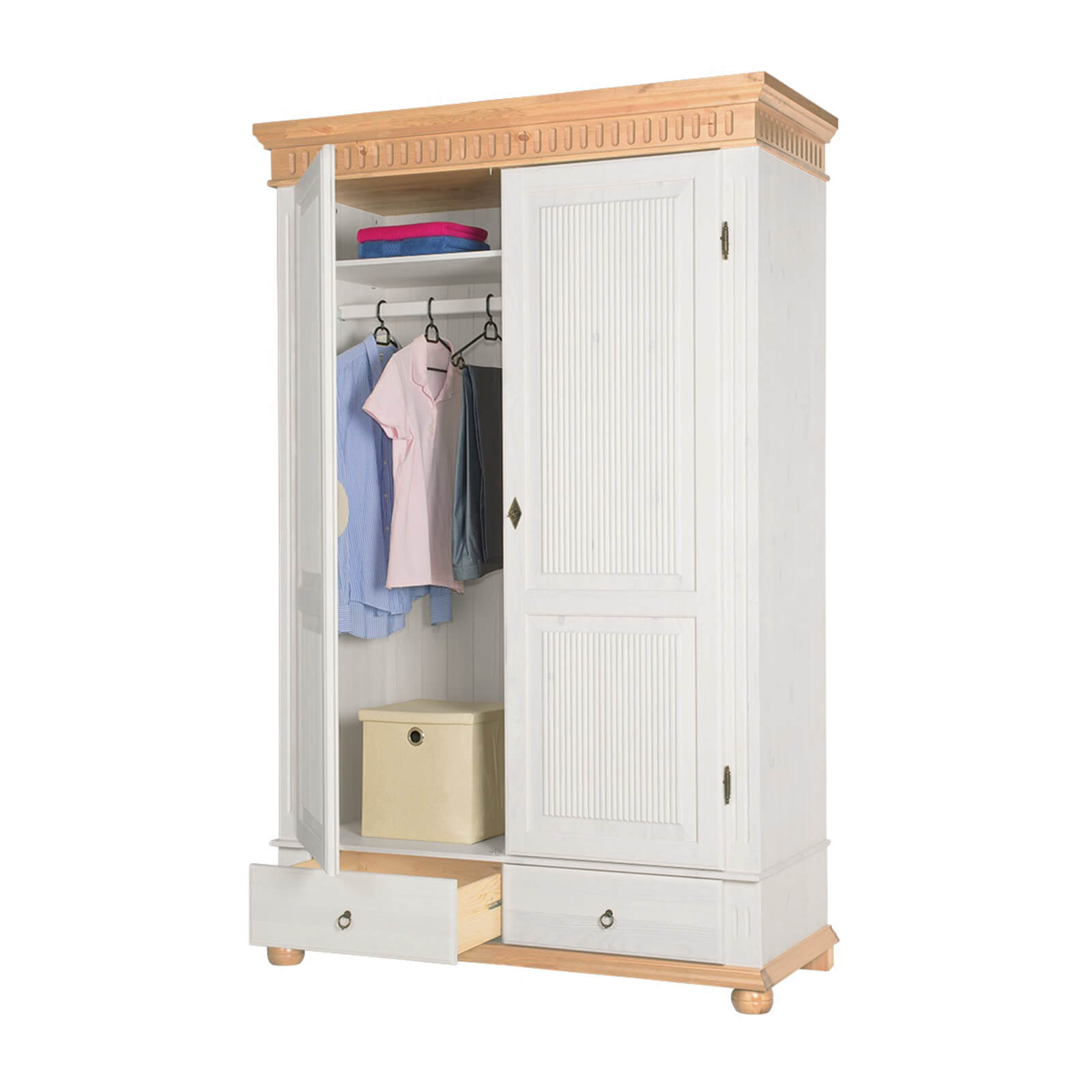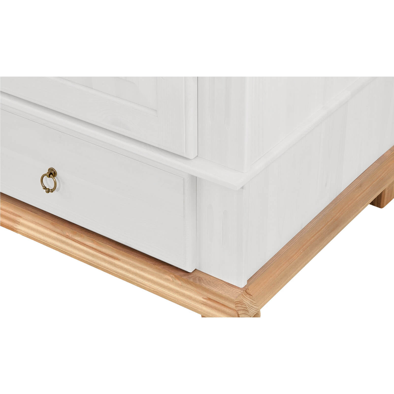 Высокий двухдверный Шкаф Хельсинки-2-GT-М Белый воск +антик из массива сосны для платьев с разделенной филенкой.