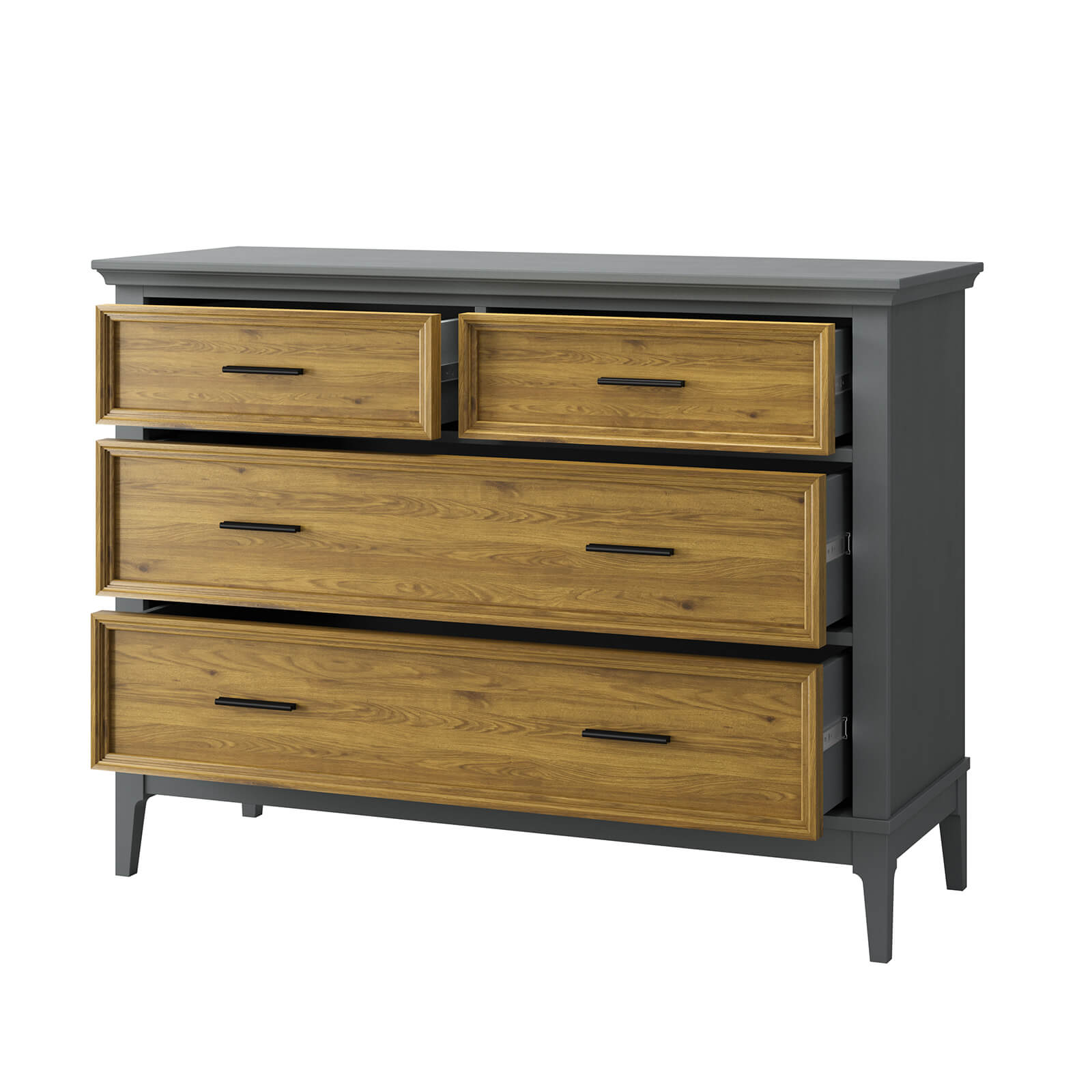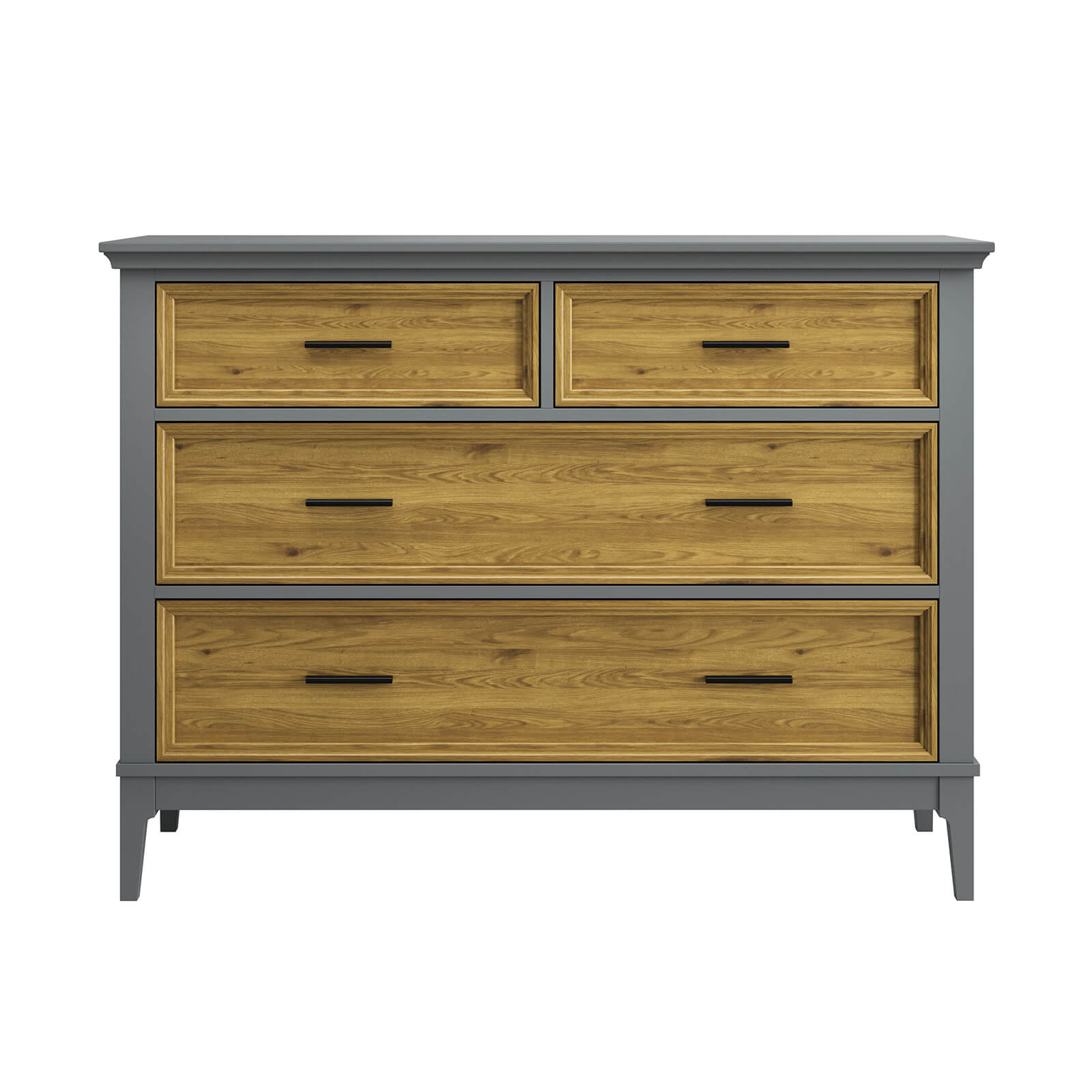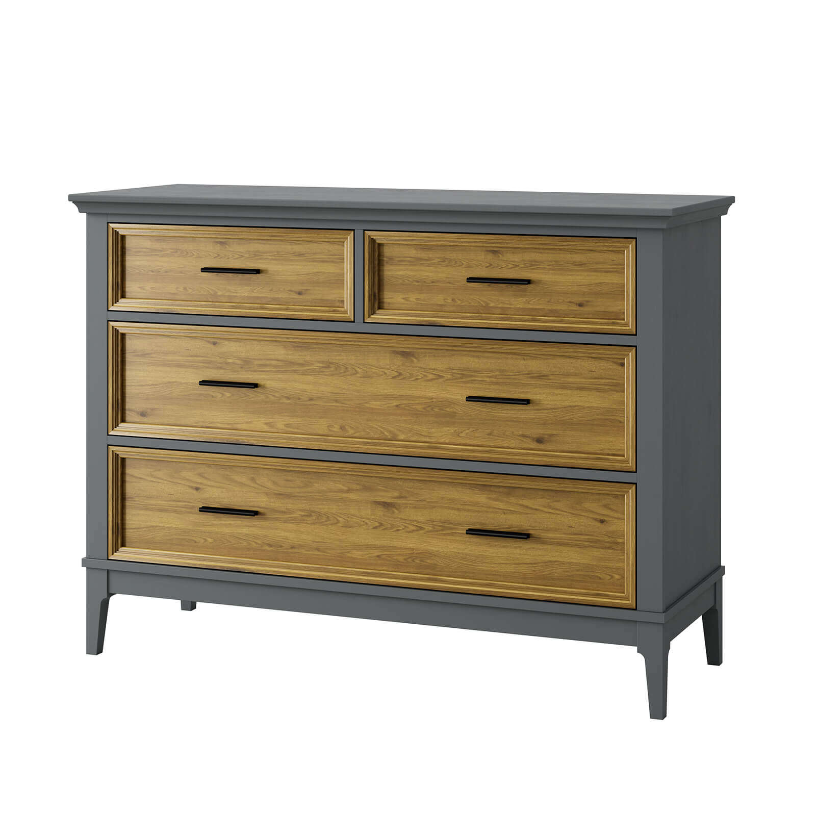 Комод Квадро-С 04 Серый №7042 + антик №24 массив сосны. Два узких сверху и два широких ящика на шариковых телескопических направляющих.