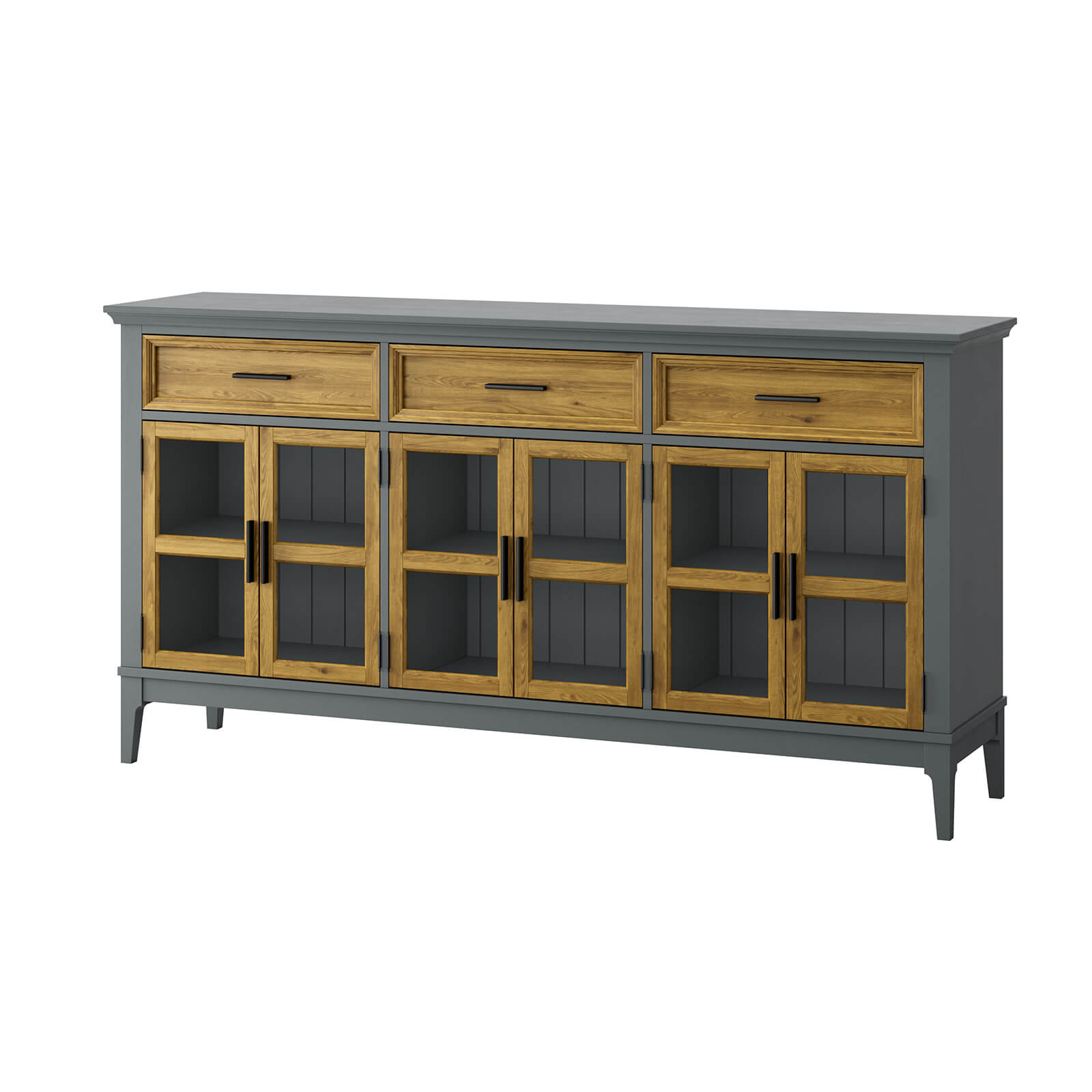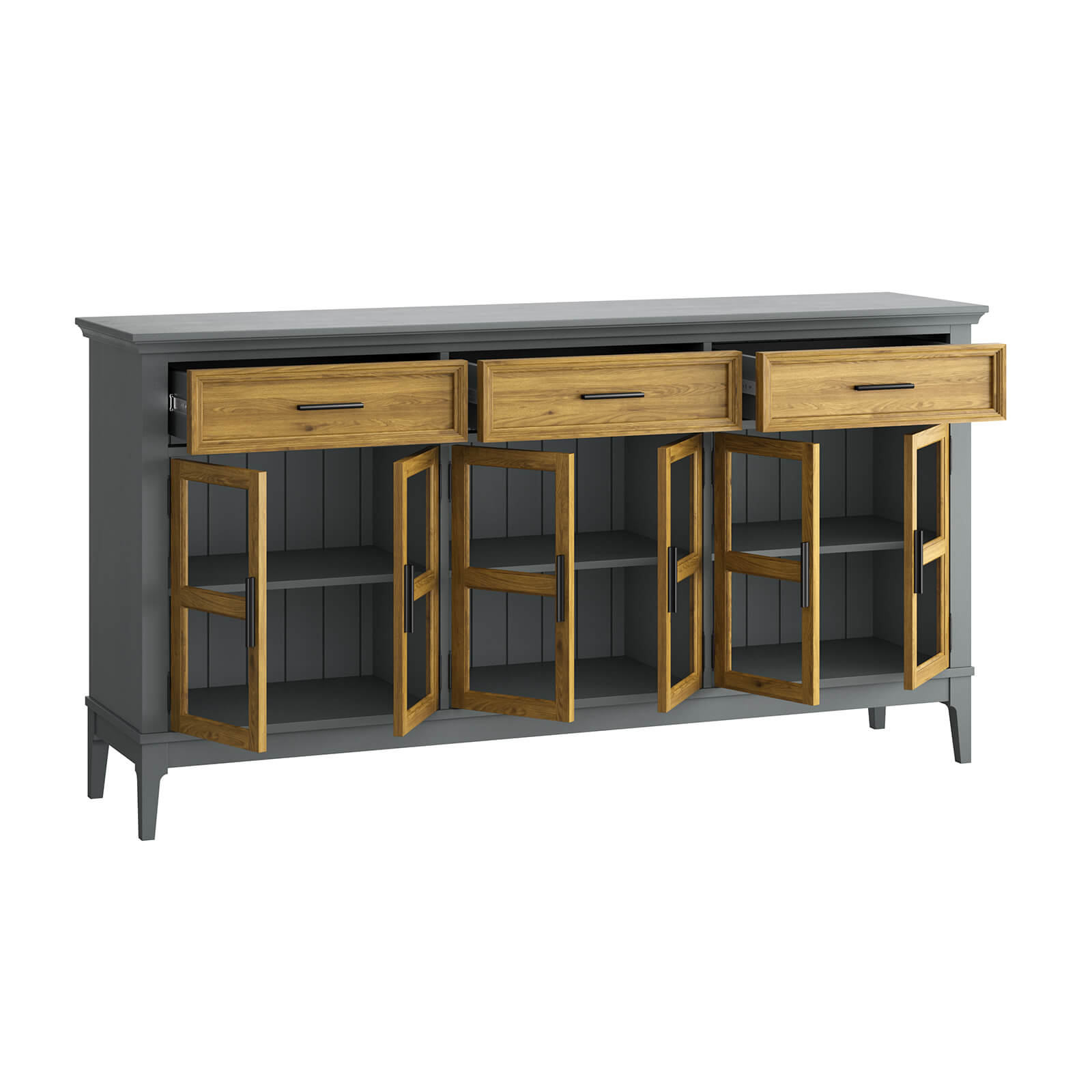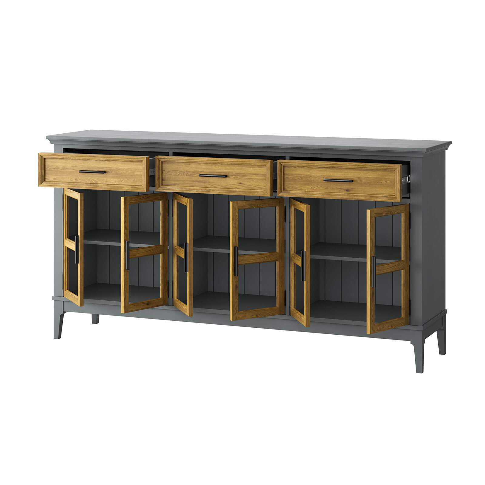 Шесть распашных стеклянных дверей и три ящика на телескопических шариковых направляющих.
