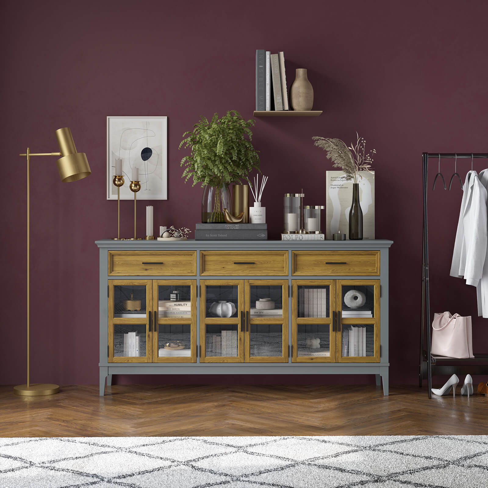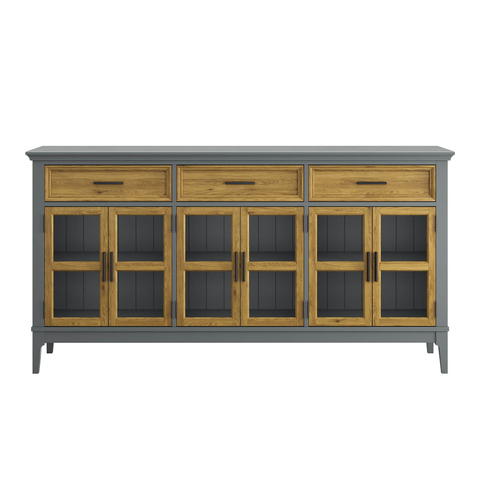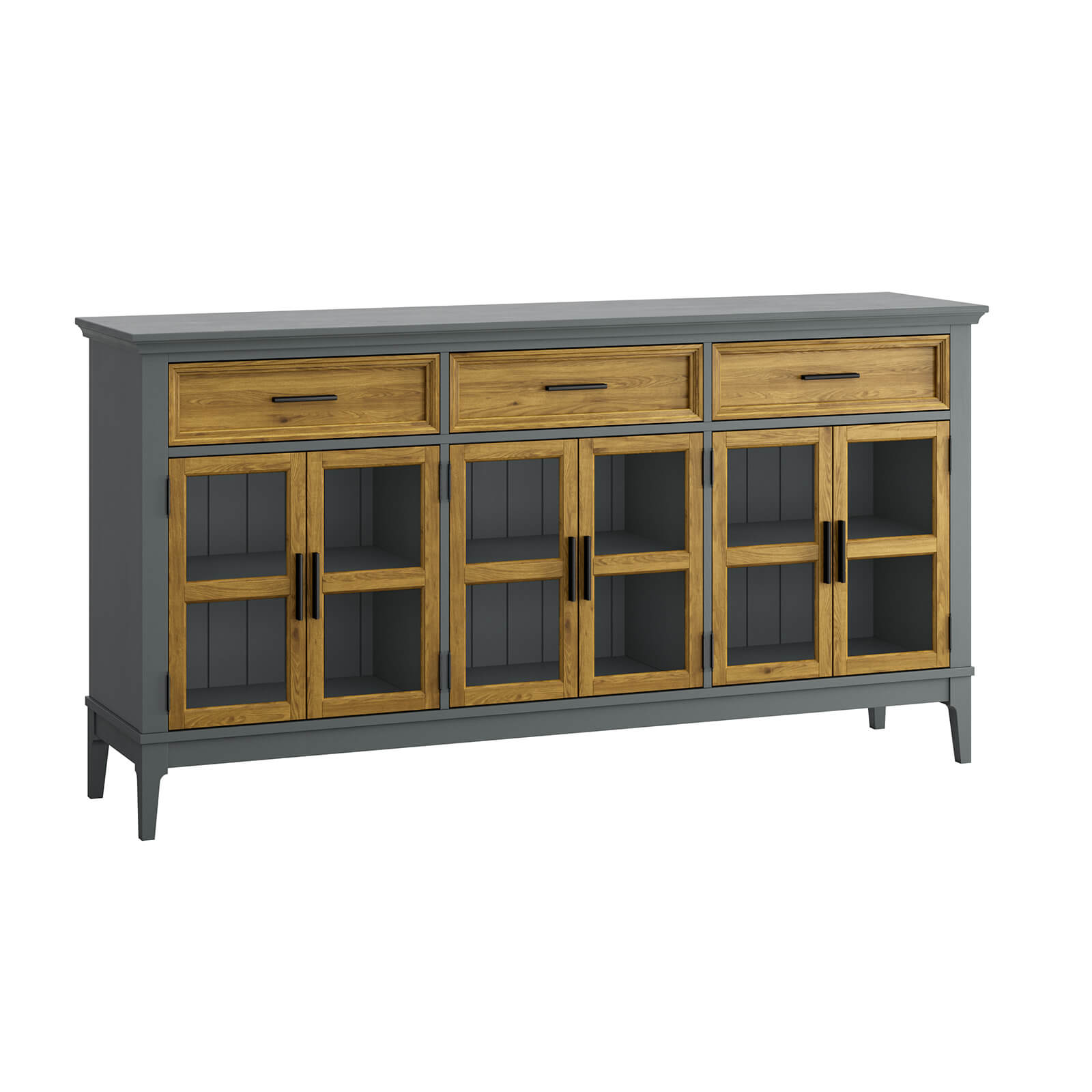 Шесть распашных стеклянных дверей и три ящика на телескопических шариковых направляющих.