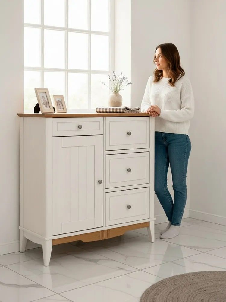 Комод 113 для прихожей "Пенни", универсальный пр/лев белый воск/антик 24.