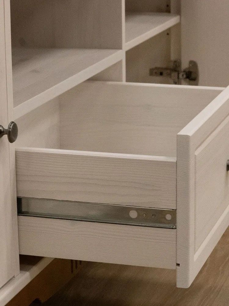 Ящик на шариковых направляющих частичного выдвижения без доводчиков.