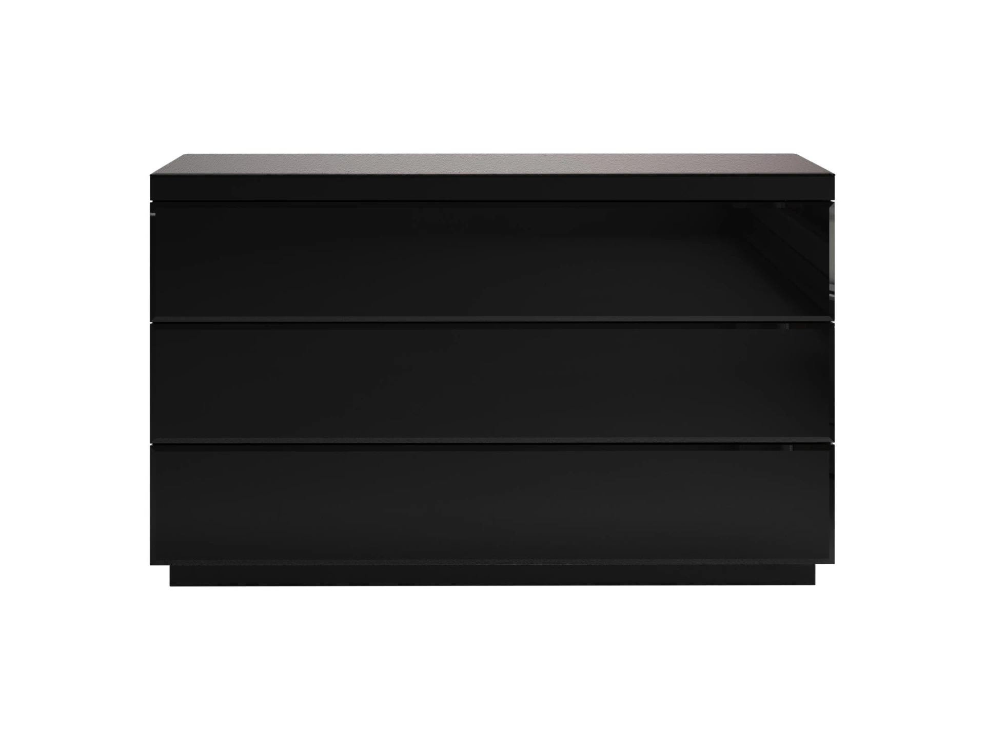 Серия корпусной универсальной мебели с глянцевыми и зеркальными фасадами. Особенностью линейки является прогрессивный актуальный дизайн в минималистичном исполнении. Прямые линии, графичность, сдержанность балансируются отблесками гладких текстур. Отражающие поверхности делают помещение визуально больше, воздушнее, светлее и мягче. Отсутствие ручек избавляет мебель от лишнего визуального шума, позволяя гармонично интегрироваться в любую локацию. Шкафы, комоды, тумбы, серванты, туалетные столики обладают широкими функциональными возможностями и подходят для обустройства спальни, гостиной, апартаментов, отелей, салонов, спа, бьюти-пространств. Плавная и бесшумная эксплуатация происходит за счёт системы Push-to-Open («нажал-открыл»), а также качественной соединительной фурнитуры Hettich, которая отличается долгим сроком службы. Лаконичные изделия помогут организовать хранение одежды, текстиля, канцелярии, косметики, техники и других вещей. В интерьере возьмут на себя роль практичных помощников с эффектным акцентом. Комод с 3 выдвижными ящиками, открывающимися по принципу «нажал-открыл». Фасады ящиков и верхняя поверхность комода декорированы стеклом.|Комод рекомендуется крепить к стене.