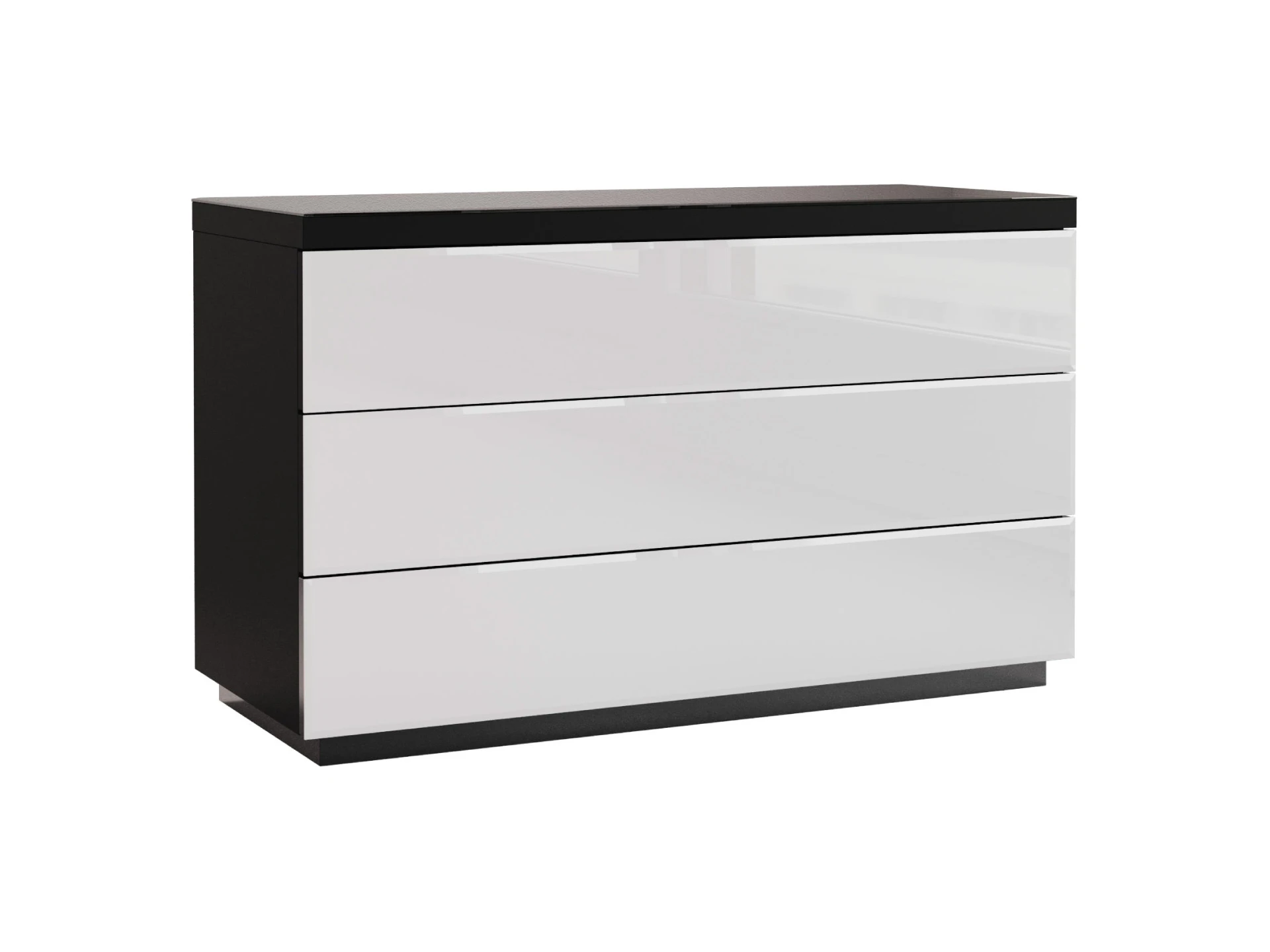 Серия корпусной универсальной мебели с глянцевыми и зеркальными фасадами. Особенностью линейки является прогрессивный актуальный дизайн в минималистичном исполнении. Прямые линии, графичность, сдержанность балансируются отблесками гладких текстур. Отражающие поверхности делают помещение визуально больше, воздушнее, светлее и мягче. Отсутствие ручек избавляет мебель от лишнего визуального шума, позволяя гармонично интегрироваться в любую локацию. Шкафы, комоды, тумбы, серванты, туалетные столики обладают широкими функциональными возможностями и подходят для обустройства спальни, гостиной, апартаментов, отелей, салонов, спа, бьюти-пространств. Плавная и бесшумная эксплуатация происходит за счёт системы Push-to-Open («нажал-открыл»), а также качественной соединительной фурнитуры Hettich, которая отличается долгим сроком службы. Лаконичные изделия помогут организовать хранение одежды, текстиля, канцелярии, косметики, техники и других вещей. В интерьере возьмут на себя роль практичных помощников с эффектным акцентом. Комод с 3 выдвижными ящиками, открывающимися по принципу «нажал-открыл». Фасады ящиков и верхняя поверхность комода декорированы стеклом.|Комод рекомендуется крепить к стене.