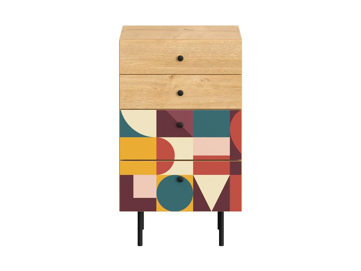 Корпусная мебель, с которой можно составить множество решений для гостиной, детской, кухни, спальни, прихожей, рабочей зоны. Комоды, шкафы, тумбы, столы, витрины, полки, серванты характеризуются универсальностью, многозадачностью, надёжными устойчивыми конструкциями. Имеют выразительный внешний вид, вдохновленный направлением ретро. Смотрятся легко и воздушно за счет деревянных ножек, минимального количества декоративных элементов, спокойных природных оттенков. Их можно использовать в качестве систем хранения, элементов для зонирования, фокусных точек. В дизайне ярко выражена доминанта прямых форм, графичности, лаконичных линий и элегантного исполнения. Что даёт пространству ощущение размеренности, сбалансированности, упорядоченности. Подходят интерьерам как с нейтральной базой, так и локациям с интенсивными цветовыми блоками. Индивидуальности добавят модели с оригинальными паттернами на фасадах. Предметы коллекции Frida гармонично впишутся в эклектичные и стилизованные интерьеры. Ручки входят в стоимость изделия. Высота опор 160 мм. Изображение, нанесенное на фасады, устойчиво к выцветанию, истиранию и влаге. Однако длительное воздействие воды, различных растворителей, спиртосодержащих жидкостей и высоких температур, увеличивают риск повреждения целостности покрытия. Поэтому при использовании необходимо соблюдать ряд правил: 1. Протирайте поверхность с рисунком влажной (но не мокрой) тканью. 2. Используйте мягкие ткани, например, салфетки для стекла или зеркал. 3. Не используйте для обработки поверхности с нанесенным на нее рисунком чистящие порошки и средства, в состав которых входят ацетон, растворитель или спирт. 4. Не используйте металлические губки и щетки с жесткой щетиной. 5. Избегайте ударов, падения, царапания, трения изделий с фотопечатью.