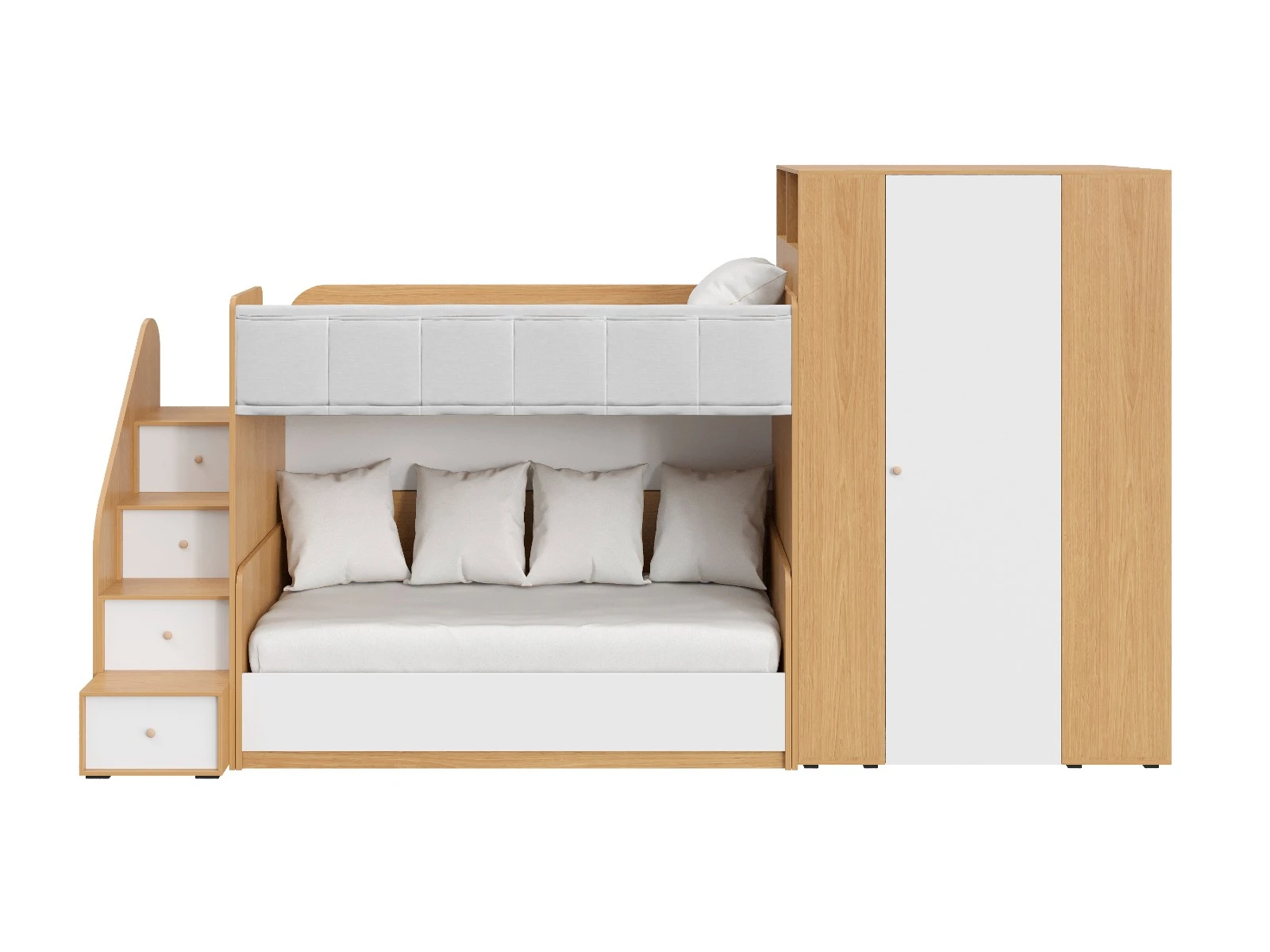 Play — коллекция модульной мебели для детской в спокойных оттенках светлого дерева с локальным добавлением ярких элементов. Естественные формы и цвета подружатся с любой стилевой темой. Подойдет как для дошкольников, так и для подростков. Изделия отвечают главным критериям детской мебели: безопасны, устойчивы, надёжны и эстетичны. Соблюдены экологические показатели, использована ЛДСП класса эмиссии Е1 и Е0,5 — для детской мебели с герметично закрытыми кромками. Из большого количества модулей вы можете спроектировать индивидуальное решение, исходя из потребностей и площади помещения. Для игровой локации, учебного места, спальной зоны, гардероба, хранения игрушек, техники и предметов для творчества — используйте модульные шкафы, стеллажи, тумбы, кровати-чердаки, столы, стеллажи-лестницы. Сквозные стеллажи идеальны в качестве перегородок в детской. Они пропускают свет, не перегружают площадь, позволяют использовать разные декоративные приёмы. Двухярусные кровати и «чердаки» удобно использовать в компактной локации. Шкафы напольные, навесные, тумбы, лаконичные столы — мебель Play поддержит атмосферу порядка и идеальный настрой на учёбу, творчество, поможет развить самостоятельность и аккуратность. Белые фасады отражают свет, освежают интерьер. С коллекцией Play вы легко создадите организованное и креативное пространство, в котором у каждой вещи есть своё место, и где ребенку комфортно учиться, играть, отдыхать, творить. Многофункциональная композиция для детской и молодежной. Ручки в стоимость изделия не включены, приобретаются отдельно.