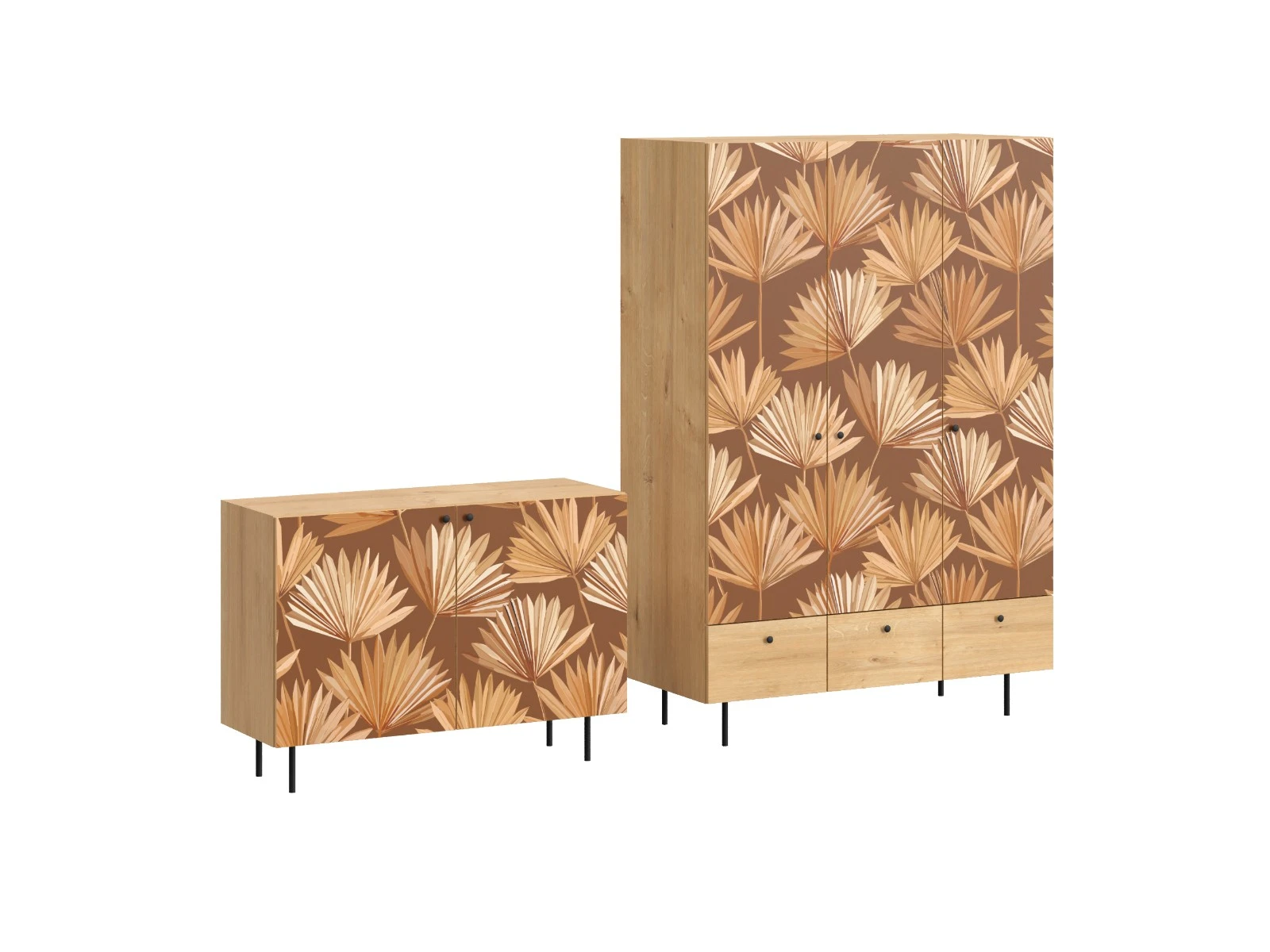 Корпусная мебель, с которой можно составить множество решений для гостиной, детской, кухни, спальни, прихожей, рабочей зоны. Комоды, шкафы, тумбы, столы, витрины, полки, серванты характеризуются универсальностью, многозадачностью, надёжными устойчивыми конструкциями. Имеют выразительный внешний вид, вдохновленный направлением ретро. Смотрятся легко и воздушно за счет деревянных ножек, минимального количества декоративных элементов, спокойных природных оттенков. Их можно использовать в качестве систем хранения, элементов для зонирования, фокусных точек. В дизайне ярко выражена доминанта прямых форм, графичности, лаконичных линий и элегантного исполнения. Что даёт пространству ощущение размеренности, сбалансированности, упорядоченности. Подходят интерьерам как с нейтральной базой, так и локациям с интенсивными цветовыми блоками. Индивидуальности добавят модели с оригинальными паттернами на фасадах. Предметы коллекции Frida гармонично впишутся в эклектичные и стилизованные интерьеры. Ручки входят в стоимость изделия. Высота опор 160 мм.