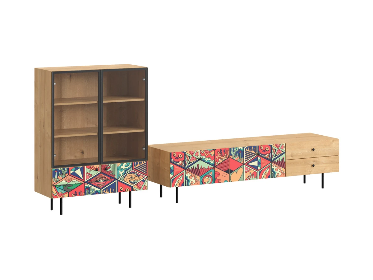 Корпусная мебель, с которой можно составить множество решений для гостиной, детской, кухни, спальни, прихожей, рабочей зоны. Комоды, шкафы, тумбы, столы, витрины, полки, серванты характеризуются универсальностью, многозадачностью, надёжными устойчивыми конструкциями. Имеют выразительный внешний вид, вдохновленный направлением ретро. Смотрятся легко и воздушно за счет деревянных ножек, минимального количества декоративных элементов, спокойных природных оттенков. Их можно использовать в качестве систем хранения, элементов для зонирования, фокусных точек. В дизайне ярко выражена доминанта прямых форм, графичности, лаконичных линий и элегантного исполнения. Что даёт пространству ощущение размеренности, сбалансированности, упорядоченности. Подходят интерьерам как с нейтральной базой, так и локациям с интенсивными цветовыми блоками. Индивидуальности добавят модели с оригинальными паттернами на фасадах. Предметы коллекции Frida гармонично впишутся в эклектичные и стилизованные интерьеры. Ручки входят в стоимость изделия. Высота опор 160 мм. Изображение, нанесенное на фасады, устойчиво к выцветанию, истиранию и влаге. Однако длительное воздействие воды, различных растворителей, спиртосодержащих жидкостей и высоких температур, увеличивают риск повреждения целостности покрытия. Поэтому при использовании необходимо соблюдать ряд правил: 1. Протирайте поверхность с рисунком влажной (но не мокрой) тканью. 2. Используйте мягкие ткани, например, салфетки для стекла или зеркал. 3. Не используйте для обработки поверхности с нанесенным на нее рисунком чистящие порошки и средства, в состав которых входят ацетон, растворитель или спирт. 4. Не используйте металлические губки и щетки с жесткой щетиной. 5. Избегайте ударов, падения, царапания, трения изделий с фотопечатью.