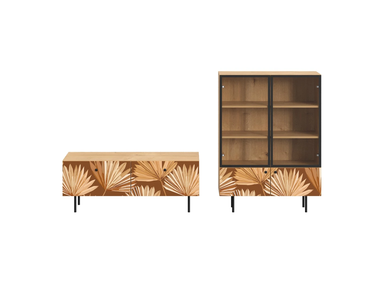Корпусная мебель, с которой можно составить множество решений для гостиной, детской, кухни, спальни, прихожей, рабочей зоны. Комоды, шкафы, тумбы, столы, витрины, полки, серванты характеризуются универсальностью, многозадачностью, надёжными устойчивыми конструкциями. Имеют выразительный внешний вид, вдохновленный направлением ретро. Смотрятся легко и воздушно за счет деревянных ножек, минимального количества декоративных элементов, спокойных природных оттенков. Их можно использовать в качестве систем хранения, элементов для зонирования, фокусных точек. В дизайне ярко выражена доминанта прямых форм, графичности, лаконичных линий и элегантного исполнения. Что даёт пространству ощущение размеренности, сбалансированности, упорядоченности. Подходят интерьерам как с нейтральной базой, так и локациям с интенсивными цветовыми блоками. Индивидуальности добавят модели с оригинальными паттернами на фасадах. Предметы коллекции Frida гармонично впишутся в эклектичные и стилизованные интерьеры. Ручки входят в стоимость изделия. Высота опор 160 мм. Изображение, нанесенное на фасады, устойчиво к выцветанию, истиранию и влаге. Однако длительное воздействие воды, различных растворителей, спиртосодержащих жидкостей и высоких температур, увеличивают риск повреждения целостности покрытия. Поэтому при использовании необходимо соблюдать ряд правил: 1. Протирайте поверхность с рисунком влажной (но не мокрой) тканью. 2. Используйте мягкие ткани, например, салфетки для стекла или зеркал. 3. Не используйте для обработки поверхности с нанесенным на нее рисунком чистящие порошки и средства, в состав которых входят ацетон, растворитель или спирт. 4. Не используйте металлические губки и щетки с жесткой щетиной. 5. Избегайте ударов, падения, царапания, трения изделий с фотопечатью.