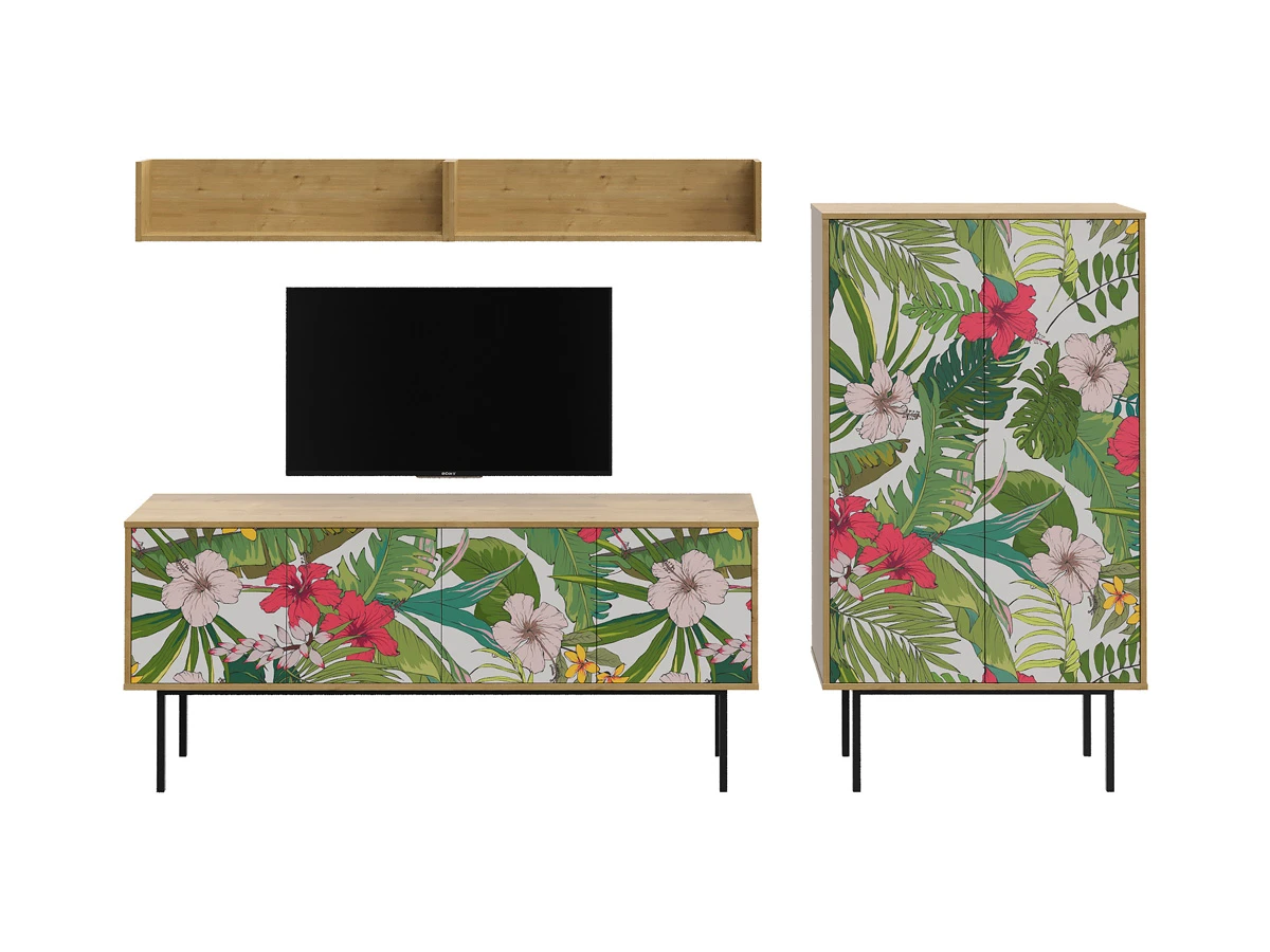 Коллекция Boho Color — более 40 комбинаций изящных тумб, шкафов, консолей с оригинальными принтами на фасадах. Узор напечатан на ЛДСП, остаётся ярким и насыщенным спустя годы использования, не выцветает, не тускнеет, смотрится красиво и актуально. Изделия станут притягательной фишкой гостиной, спальни, детской, кабинета, творческой студии, лаундж и бьюти-зоны. За их насыщенными данными скрывается функциональность, которая гарантирует удобное размещение необходимых вещей. Характерная черта серии — тонкие, но прочные металлические ножки. Которые контрастируют с четкими прямоугольными формами, что придает мебели легкий воздушный вид. Поэтому предметы Boho Color не перегружают пространство. Экзотические мотивы, растительные орнаменты, тропические цветы, колоритные узоры рисуют расслабленную атмосферу отдыха и приключений. Добавляют интерьеру многослойности, объёма, сочности, теплоты, природной энергетики. С помощью этих деталей можно задать тон общей композиции, расставить необходимые акценты или подчеркнуть индивидуальность интерьера. Высота опор 27 см. Изображение, нанесенное на фасады, устойчиво к выцветанию, истиранию и влаге. Однако длительное воздействие воды, различных растворителей, спиртосодержащих жидкостей и высоких температур, увеличивают риск повреждения целостности покрытия. Поэтому при использовании необходимо соблюдать ряд правил: 1. Протирайте поверхность с рисунком влажной (но не мокрой) тканью. 2. Используйте мягкие ткани, например, салфетки для стекла или зеркал. 3. Не используйте для обработки поверхности с нанесенным на нее рисунком чистящие порошки и средства, в состав которых входят ацетон, растворитель или спирт. 4. Не используйте металлические губки и щетки с жесткой щетиной. 5. Избегайте ударов, падения, царапания, трения изделий с фотопечатью.
