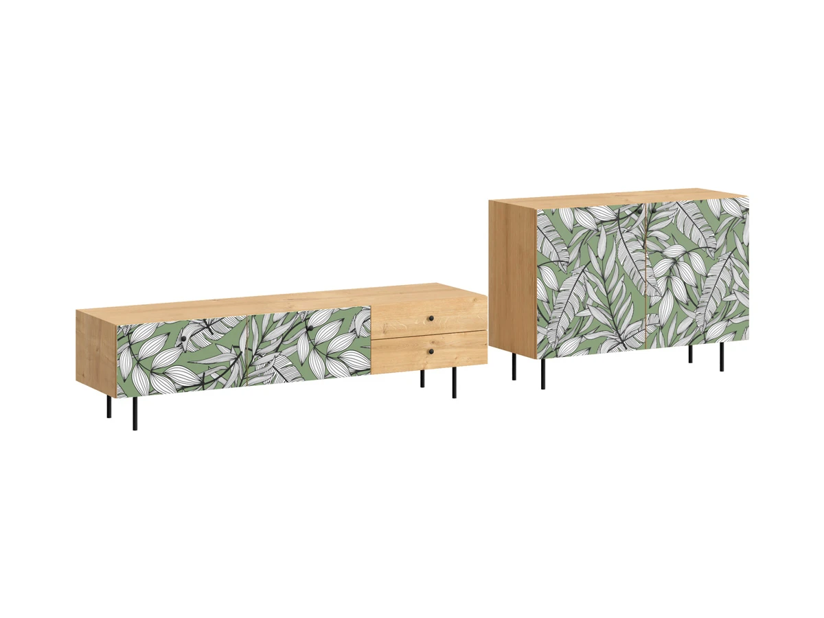 Корпусная мебель, с которой можно составить множество решений для гостиной, детской, кухни, спальни, прихожей, рабочей зоны. Комоды, шкафы, тумбы, столы, витрины, полки, серванты характеризуются универсальностью, многозадачностью, надёжными устойчивыми конструкциями. Имеют выразительный внешний вид, вдохновленный направлением ретро. Смотрятся легко и воздушно за счет деревянных ножек, минимального количества декоративных элементов, спокойных природных оттенков. Их можно использовать в качестве систем хранения, элементов для зонирования, фокусных точек. В дизайне ярко выражена доминанта прямых форм, графичности, лаконичных линий и элегантного исполнения. Что даёт пространству ощущение размеренности, сбалансированности, упорядоченности. Подходят интерьерам как с нейтральной базой, так и локациям с интенсивными цветовыми блоками. Индивидуальности добавят модели с оригинальными паттернами на фасадах. Предметы коллекции Frida гармонично впишутся в эклектичные и стилизованные интерьеры. Ручки входят в стоимость изделия. Высота опор 160 мм. Изображение, нанесенное на фасады, устойчиво к выцветанию, истиранию и влаге. Однако длительное воздействие воды, различных растворителей, спиртосодержащих жидкостей и высоких температур, увеличивают риск повреждения целостности покрытия. Поэтому при использовании необходимо соблюдать ряд правил: 1. Протирайте поверхность с рисунком влажной (но не мокрой) тканью. 2. Используйте мягкие ткани, например, салфетки для стекла или зеркал. 3. Не используйте для обработки поверхности с нанесенным на нее рисунком чистящие порошки и средства, в состав которых входят ацетон, растворитель или спирт. 4. Не используйте металлические губки и щетки с жесткой щетиной. 5. Избегайте ударов, падения, царапания, трения изделий с фотопечатью.