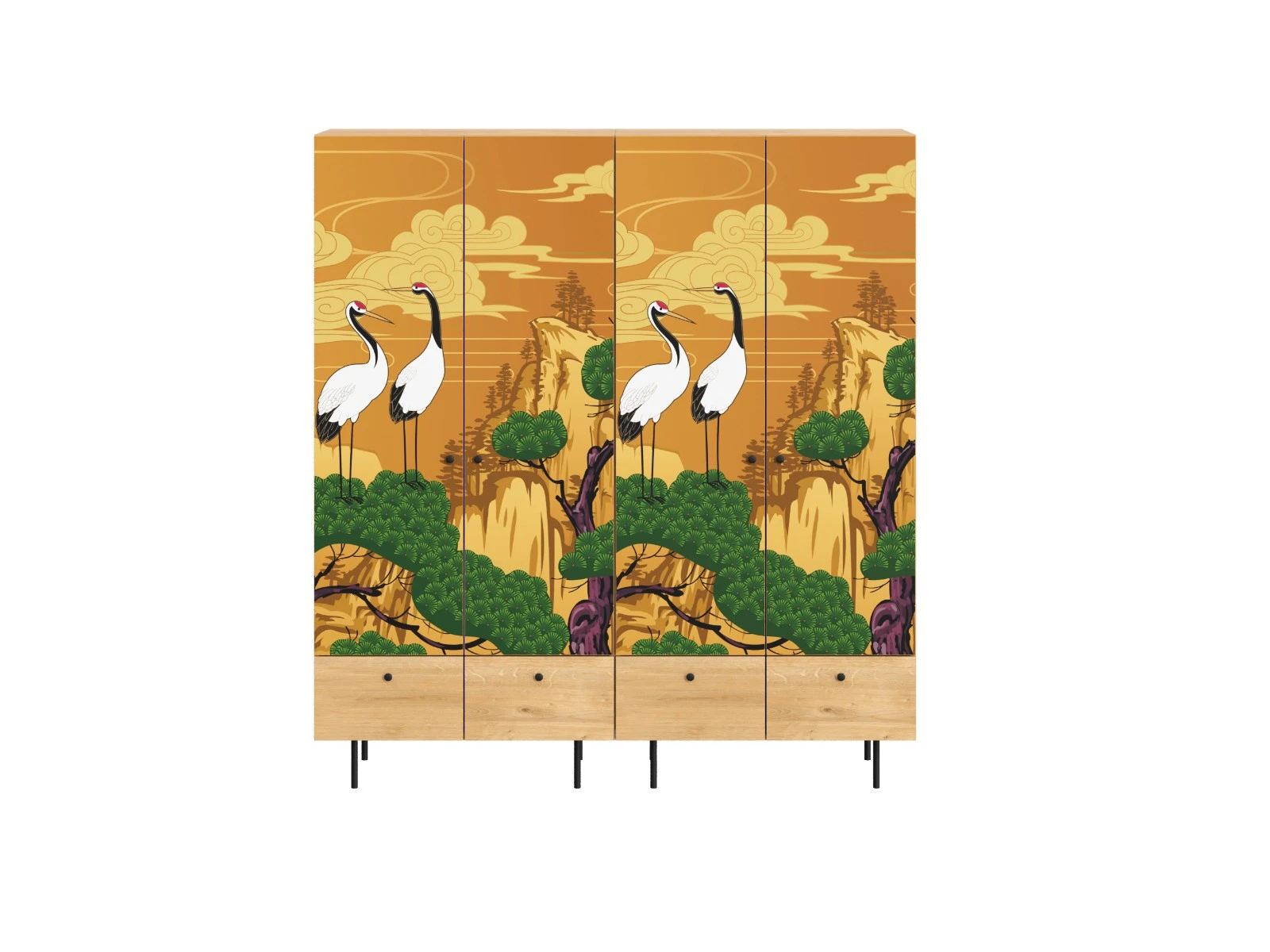 Корпусная мебель, с которой можно составить множество решений для гостиной, детской, кухни, спальни, прихожей, рабочей зоны. Комоды, шкафы, тумбы, столы, витрины, полки, серванты характеризуются универсальностью, многозадачностью, надёжными устойчивыми конструкциями. Имеют выразительный внешний вид, вдохновленный направлением ретро. Смотрятся легко и воздушно за счет деревянных ножек, минимального количества декоративных элементов, спокойных природных оттенков. Их можно использовать в качестве систем хранения, элементов для зонирования, фокусных точек. В дизайне ярко выражена доминанта прямых форм, графичности, лаконичных линий и элегантного исполнения. Что даёт пространству ощущение размеренности, сбалансированности, упорядоченности. Подходят интерьерам как с нейтральной базой, так и локациям с интенсивными цветовыми блоками. Индивидуальности добавят модели с оригинальными паттернами на фасадах. Предметы коллекции Frida гармонично впишутся в эклектичные и стилизованные интерьеры. Ручки входят в стоимость изделия. Высота опор 160 мм. Изображение, нанесенное на фасады, устойчиво к выцветанию, истиранию и влаге. Однако длительное воздействие воды, различных растворителей, спиртосодержащих жидкостей и высоких температур, увеличивают риск повреждения целостности покрытия. Поэтому при использовании необходимо соблюдать ряд правил: 1. Протирайте поверхность с рисунком влажной (но не мокрой) тканью. 2. Используйте мягкие ткани, например, салфетки для стекла или зеркал. 3. Не используйте для обработки поверхности с нанесенным на нее рисунком чистящие порошки и средства, в состав которых входят ацетон, растворитель или спирт. 4. Не используйте металлические губки и щетки с жесткой щетиной. 5. Избегайте ударов, падения, царапания, трения изделий с фотопечатью.
