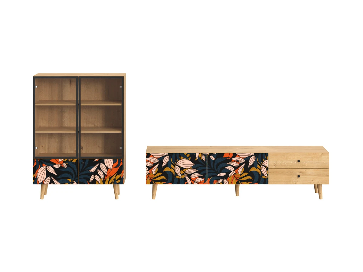 Корпусная мебель, с которой можно составить множество решений для гостиной, детской, кухни, спальни, прихожей, рабочей зоны. Комоды, шкафы, тумбы, столы, витрины, полки, серванты характеризуются универсальностью, многозадачностью, надёжными устойчивыми конструкциями. Имеют выразительный внешний вид, вдохновленный направлением ретро. Смотрятся легко и воздушно за счет деревянных ножек, минимального количества декоративных элементов, спокойных природных оттенков. Их можно использовать в качестве систем хранения, элементов для зонирования, фокусных точек. В дизайне ярко выражена доминанта прямых форм, графичности, лаконичных линий и элегантного исполнения. Что даёт пространству ощущение размеренности, сбалансированности, упорядоченности. Подходят интерьерам как с нейтральной базой, так и локациям с интенсивными цветовыми блоками. Индивидуальности добавят модели с оригинальными паттернами на фасадах. Предметы коллекции Frida гармонично впишутся в эклектичные и стилизованные интерьеры. Ручки входят в стоимость изделия. Высота опор 160 мм. Изображение, нанесенное на фасады, устойчиво к выцветанию, истиранию и влаге. Однако длительное воздействие воды, различных растворителей, спиртосодержащих жидкостей и высоких температур, увеличивают риск повреждения целостности покрытия. Поэтому при использовании необходимо соблюдать ряд правил: 1. Протирайте поверхность с рисунком влажной (но не мокрой) тканью. 2. Используйте мягкие ткани, например, салфетки для стекла или зеркал. 3. Не используйте для обработки поверхности с нанесенным на нее рисунком чистящие порошки и средства, в состав которых входят ацетон, растворитель или спирт. 4. Не используйте металлические губки и щетки с жесткой щетиной. 5. Избегайте ударов, падения, царапания, трения изделий с фотопечатью.