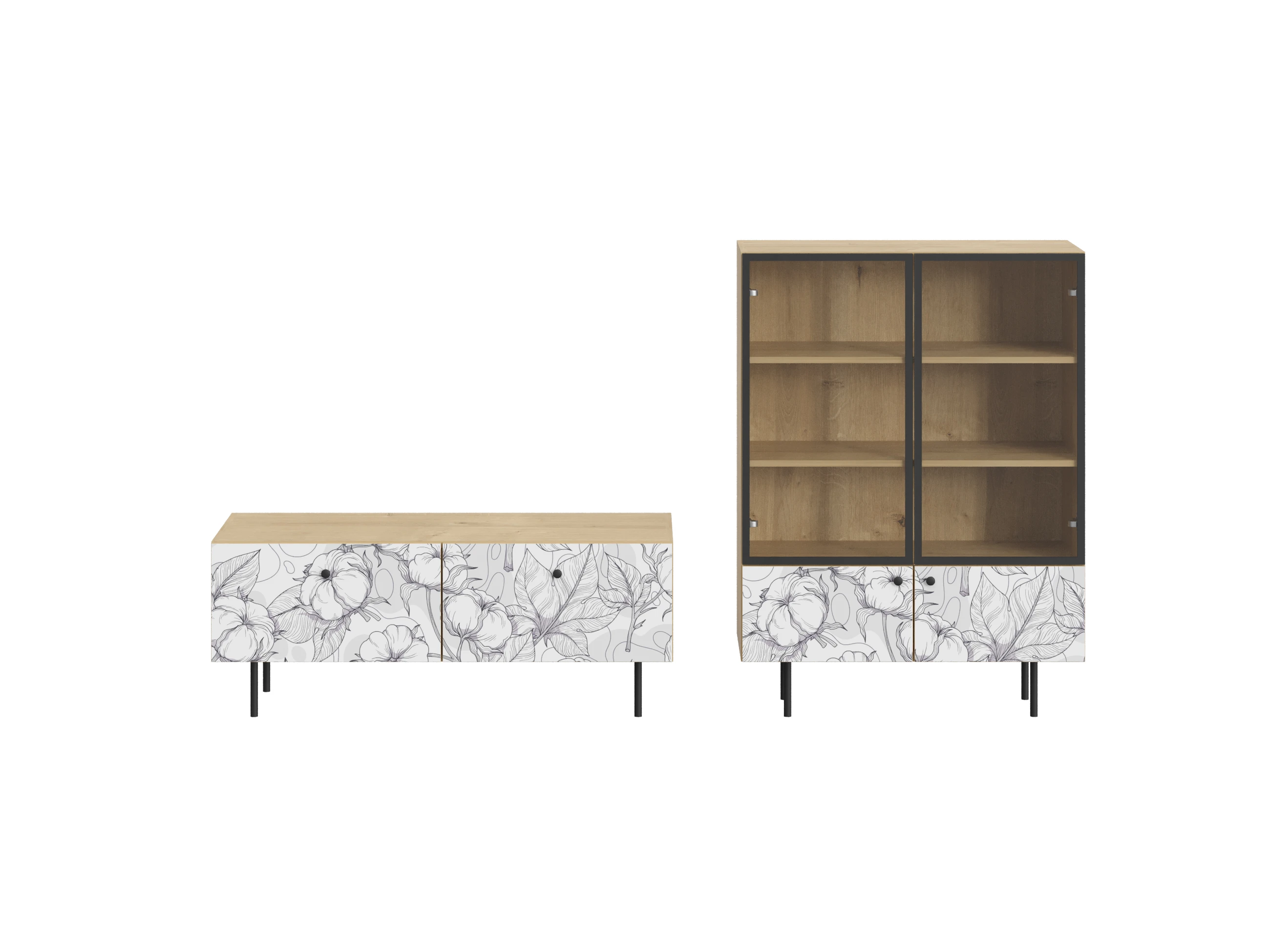 Корпусная мебель, с которой можно составить множество решений для гостиной, детской, кухни, спальни, прихожей, рабочей зоны. Комоды, шкафы, тумбы, столы, витрины, полки, серванты характеризуются универсальностью, многозадачностью, надёжными устойчивыми конструкциями. Имеют выразительный внешний вид, вдохновленный направлением ретро. Смотрятся легко и воздушно за счет деревянных ножек, минимального количества декоративных элементов, спокойных природных оттенков. Их можно использовать в качестве систем хранения, элементов для зонирования, фокусных точек. В дизайне ярко выражена доминанта прямых форм, графичности, лаконичных линий и элегантного исполнения. Что даёт пространству ощущение размеренности, сбалансированности, упорядоченности. Подходят интерьерам как с нейтральной базой, так и локациям с интенсивными цветовыми блоками. Индивидуальности добавят модели с оригинальными паттернами на фасадах. Предметы коллекции Frida гармонично впишутся в эклектичные и стилизованные интерьеры. Ручки входят в стоимость изделия. Высота опор 160 мм. Изображение, нанесенное на фасады, устойчиво к выцветанию, истиранию и влаге. Однако длительное воздействие воды, различных растворителей, спиртосодержащих жидкостей и высоких температур, увеличивают риск повреждения целостности покрытия. Поэтому при использовании необходимо соблюдать ряд правил: 1. Протирайте поверхность с рисунком влажной (но не мокрой) тканью. 2. Используйте мягкие ткани, например, салфетки для стекла или зеркал. 3. Не используйте для обработки поверхности с нанесенным на нее рисунком чистящие порошки и средства, в состав которых входят ацетон, растворитель или спирт. 4. Не используйте металлические губки и щетки с жесткой щетиной. 5. Избегайте ударов, падения, царапания, трения изделий с фотопечатью.