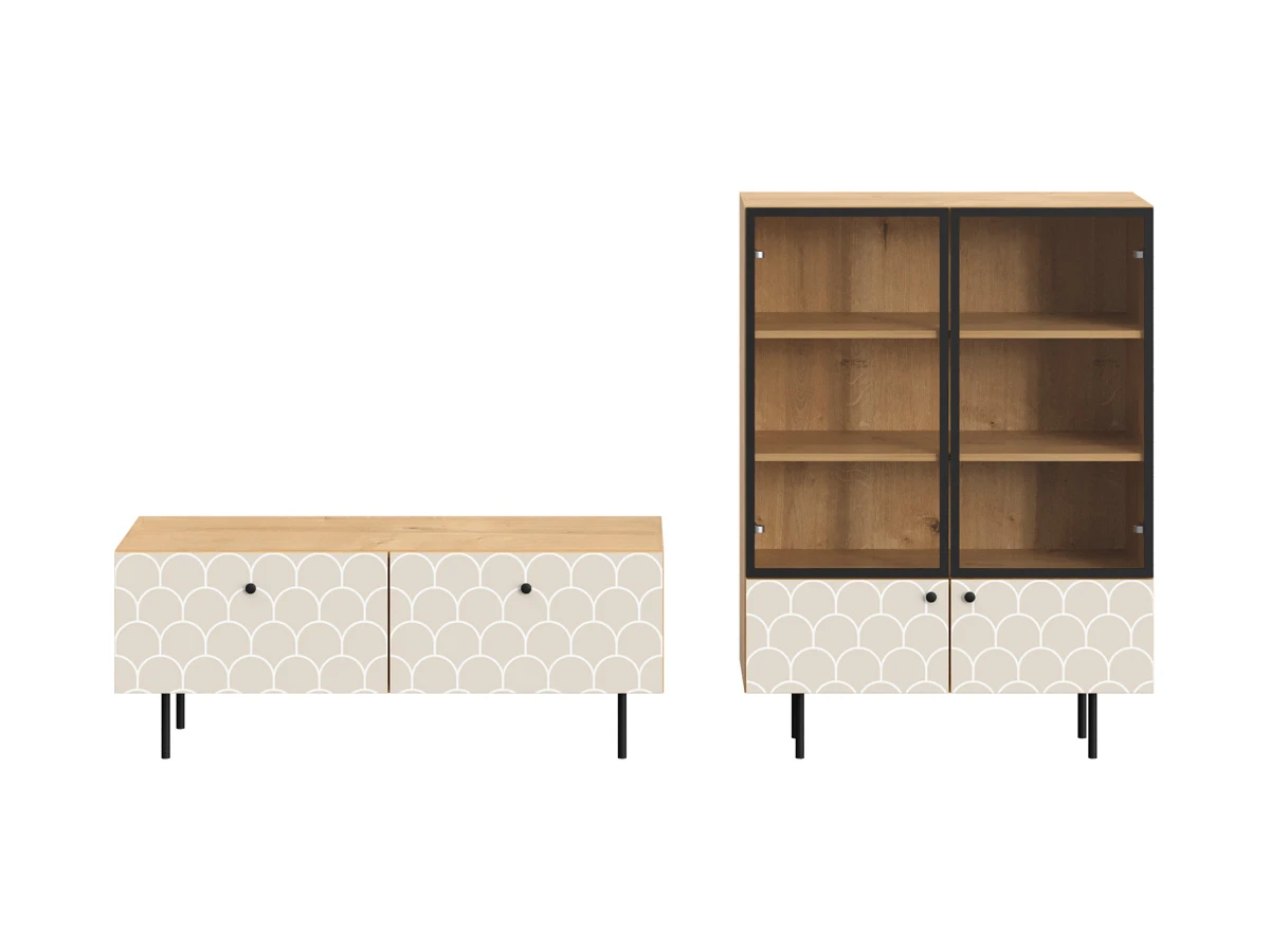 Корпусная мебель, с которой можно составить множество решений для гостиной, детской, кухни, спальни, прихожей, рабочей зоны. Комоды, шкафы, тумбы, столы, витрины, полки, серванты характеризуются универсальностью, многозадачностью, надёжными устойчивыми конструкциями. Имеют выразительный внешний вид, вдохновленный направлением ретро. Смотрятся легко и воздушно за счет деревянных ножек, минимального количества декоративных элементов, спокойных природных оттенков. Их можно использовать в качестве систем хранения, элементов для зонирования, фокусных точек. В дизайне ярко выражена доминанта прямых форм, графичности, лаконичных линий и элегантного исполнения. Что даёт пространству ощущение размеренности, сбалансированности, упорядоченности. Подходят интерьерам как с нейтральной базой, так и локациям с интенсивными цветовыми блоками. Индивидуальности добавят модели с оригинальными паттернами на фасадах. Предметы коллекции Frida гармонично впишутся в эклектичные и стилизованные интерьеры. Ручки входят в стоимость изделия. Высота опор 160 мм. Изображение, нанесенное на фасады, устойчиво к выцветанию, истиранию и влаге. Однако длительное воздействие воды, различных растворителей, спиртосодержащих жидкостей и высоких температур, увеличивают риск повреждения целостности покрытия. Поэтому при использовании необходимо соблюдать ряд правил: 1. Протирайте поверхность с рисунком влажной (но не мокрой) тканью. 2. Используйте мягкие ткани, например, салфетки для стекла или зеркал. 3. Не используйте для обработки поверхности с нанесенным на нее рисунком чистящие порошки и средства, в состав которых входят ацетон, растворитель или спирт. 4. Не используйте металлические губки и щетки с жесткой щетиной. 5. Избегайте ударов, падения, царапания, трения изделий с фотопечатью.