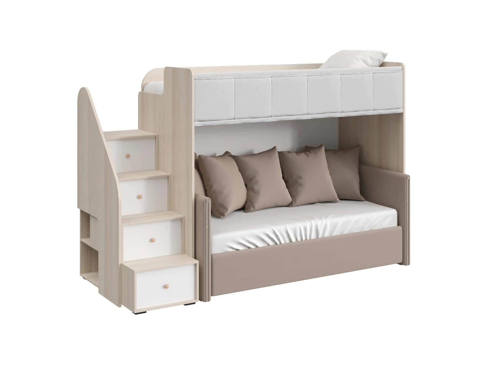 Play — коллекция модульной мебели для детской в спокойных оттенках светлого дерева с локальным добавлением ярких элементов. Естественные формы и цвета подружатся с любой стилевой темой. Подойдет как для дошкольников, так и для подростков. Изделия отвечают главным критериям детской мебели: безопасны, устойчивы, надёжны и эстетичны. Соблюдены экологические показатели, использована ЛДСП класса эмиссии Е1 и Е0,5 — для детской мебели с герметично закрытыми кромками. Из большого количества модулей вы можете спроектировать индивидуальное решение, исходя из потребностей и площади помещения. Для игровой локации, учебного места, спальной зоны, гардероба, хранения игрушек, техники и предметов для творчества — используйте модульные шкафы, стеллажи, тумбы, кровати-чердаки, столы, стеллажи-лестницы. Сквозные стеллажи идеальны в качестве перегородок в детской. Они пропускают свет, не перегружают площадь, позволяют использовать разные декоративные приёмы. Двухярусные кровати и «чердаки» удобно использовать в компактной локации. Шкафы напольные, навесные, тумбы, лаконичные столы — мебель Play поддержит атмосферу порядка и идеальный настрой на учёбу, творчество, поможет развить самостоятельность и аккуратность. Белые фасады отражают свет, освежают интерьер. С коллекцией Play вы легко создадите организованное и креативное пространство, в котором у каждой вещи есть своё место, и где ребенку комфортно учиться, играть, отдыхать, творить. Многофункциональная композиция для детской и молодежной. Ручки в стоимость изделия не включены, приобретаются отдельно.