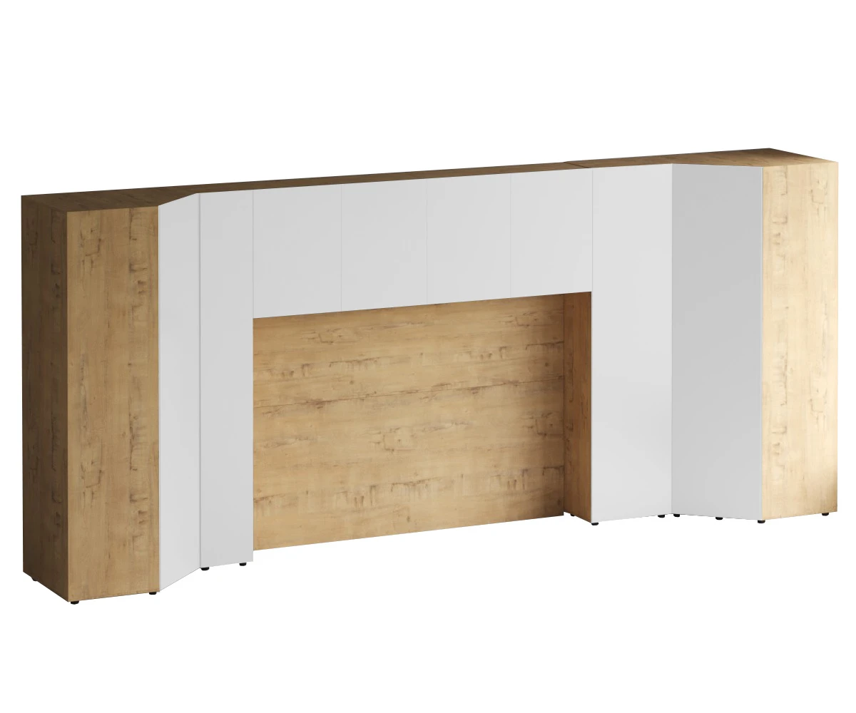 Линейка корпусной мебели, которая закрывает большинство потребностей по хранению и организации вещей. Универсальные и функциональные шкафы, тумбы, стеллажи, столы группируются по функциональны зонам. С их помощью можно обустроить прихожую, гостиную, кабинет, спальню, детскую. В основе дизайна — софт-минимализм с продуманными деталями и материалами. Скрытые механизмы открытия дверей, естественная древесная текстура, большая вместительность, белый цвет делают их исключительно удачными для большинства современных пространств. Гладкие фасады без декора и ручек поддерживают идею отказа от визуального шума, двери открываются по принципу «нажал-открыл». Мебель Modus создает уравновешенный интерьер с выразительными компонентами, настраивающими на ритмичный образ жизни, целеустремленность и чувство свободы от избыточных деталей. Кроватный блок предназначен для использования совместно с кроватью или диваном. Блок имеет два отделения за откидными дверьми и открытую полку над ними. Двери открываются за кромку, с помощью газовых кронштейнов. Кроватный блок оснащен светодиодным светильником, расположенным на открытой верхней полке. Светильник представляет собой алюминиевый профиль с матовым экраном, внутри которого установлена светодиодная лента. С левой и с правой стороны переднего щита блока установлены выключатели светильника и эл. розетки с разъемами USB А и Type C. Блок установлен на регулируемые опоры. Внутренние размеры отделений для хранения: 1160х850х260мм каждое отделение. Максимальная нагрузка на верхнюю полку не должна превышать 20 кг. Панель представляет собой щит из ЛДСП 16 мм. предназначенный для установки над кроватным блоком. Панель навешивается на регулируемые подвесы. Шкаф имеет три регулируемых подвеса для навешивания на стену. Полки имеют возможность перестановки по высоте в трех уровнях. Дверь открывается по принципу «нажал-открыл». Максимальная нагрузка на каждую полку не должна превышать 7 кг. Пенал Modus состоит из корпуса и фасада. Корпус с проходным нижним и верхним щитом установлен на опоры. Опоры регулируемые, пластик черный, круглые. Корпус горизонтальной стенкой разделен на два отделения по высоте. Верхнее отделение оснащено одной съёмной полкой, нижнее – пятью съёмными полками. Полки 6 – съемные, с перестановкой по высоте в 3 положения. Максимальная нагрузка на одну полку не должна превышать 4кг. Фасад представляет собой распашную дверь, которая открывается по принципу «нажал-открыл». Установка двери возможна с открыванием как в левую, так и в правую сторону.