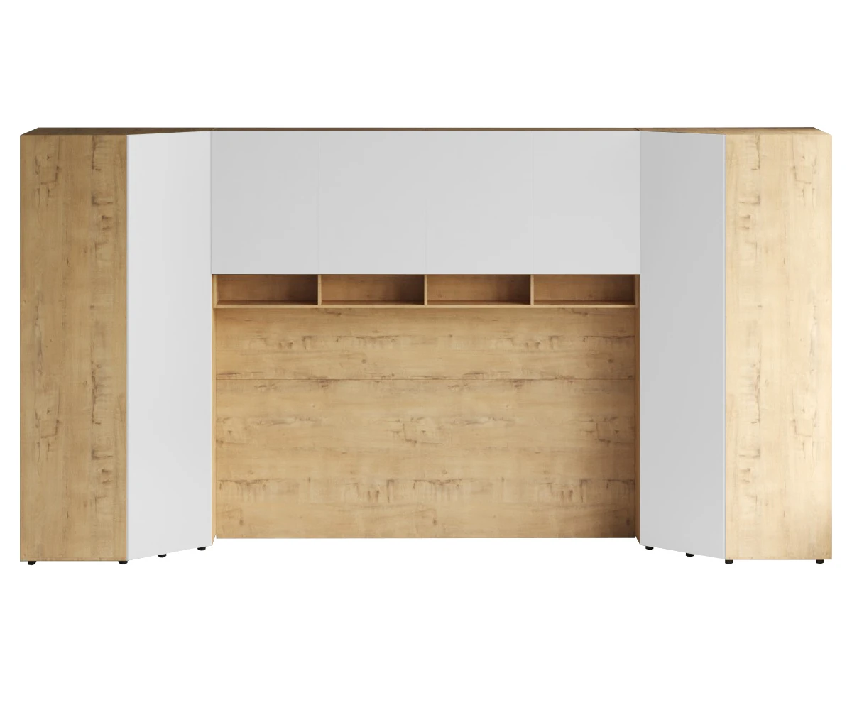 Линейка корпусной мебели, которая закрывает большинство потребностей по хранению и организации вещей. Универсальные и функциональные шкафы, тумбы, стеллажи, столы группируются по функциональны зонам. С их помощью можно обустроить прихожую, гостиную, кабинет, спальню, детскую. В основе дизайна — софт-минимализм с продуманными деталями и материалами. Скрытые механизмы открытия дверей, естественная древесная текстура, большая вместительность, белый цвет делают их исключительно удачными для большинства современных пространств. Гладкие фасады без декора и ручек поддерживают идею отказа от визуального шума, двери открываются по принципу «нажал-открыл». Мебель Modus создает уравновешенный интерьер с выразительными компонентами, настраивающими на ритмичный образ жизни, целеустремленность и чувство свободы от избыточных деталей. Кроватный блок предназначен для использования совместно с кроватью или диваном. Блок имеет два отделения за откидными дверьми и открытую полку над ними. Двери открываются за кромку, с помощью газовых кронштейнов. Кроватный блок оснащен светодиодным светильником, расположенным на открытой верхней полке. Светильник представляет собой алюминиевый профиль с матовым экраном, внутри которого установлена светодиодная лента. С левой и с правой стороны переднего щита блока установлены выключатели светильника и эл. розетки с разъемами USB А и Type C. Блок установлен на регулируемые опоры. Внутренние размеры отделений для хранения: 1160х850х260мм каждое отделение. Максимальная нагрузка на верхнюю полку не должна превышать 20 кг. Панель представляет собой щит из ЛДСП 16 мм. предназначенный для установки над кроватным блоком. Панель навешивается на регулируемые подвесы. Шкаф имеет три регулируемых подвеса для навешивания на стену. Полки имеют возможность перестановки по высоте в трех уровнях. Дверь открывается по принципу «нажал-открыл». Максимальная нагрузка на каждую полку не должна превышать 7 кг. Пенал Modus состоит из корпуса и фасада. Корпус с проходным нижним и верхним щитом установлен на опоры. Опоры регулируемые, пластик черный, круглые. Корпус горизонтальной стенкой разделен на два отделения по высоте. Верхнее отделение оснащено одной съёмной полкой, нижнее – пятью съёмными полками. Полки 6 – съемные, с перестановкой по высоте в 3 положения. Максимальная нагрузка на одну полку не должна превышать 4кг. Фасад представляет собой распашную дверь, которая открывается по принципу «нажал-открыл». Установка двери возможна с открыванием как в левую, так и в правую сторону.