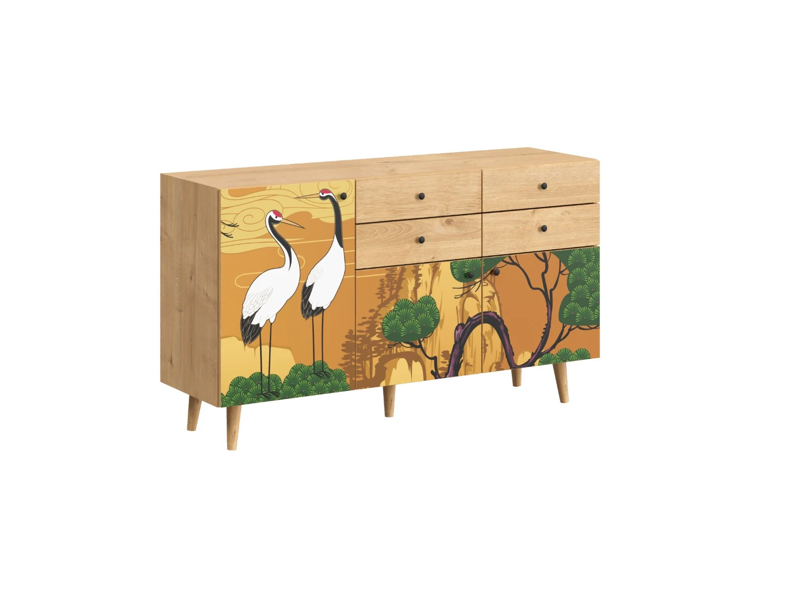Корпусная мебель, с которой можно составить множество решений для гостиной, детской, кухни, спальни, прихожей, рабочей зоны. Комоды, шкафы, тумбы, столы, витрины, полки, серванты характеризуются универсальностью, многозадачностью, надёжными устойчивыми конструкциями. Имеют выразительный внешний вид, вдохновленный направлением ретро. Смотрятся легко и воздушно за счет деревянных ножек, минимального количества декоративных элементов, спокойных природных оттенков. Их можно использовать в качестве систем хранения, элементов для зонирования, фокусных точек. В дизайне ярко выражена доминанта прямых форм, графичности, лаконичных линий и элегантного исполнения. Что даёт пространству ощущение размеренности, сбалансированности, упорядоченности. Подходят интерьерам как с нейтральной базой, так и локациям с интенсивными цветовыми блоками. Индивидуальности добавят модели с оригинальными паттернами на фасадах. Предметы коллекции Frida гармонично впишутся в эклектичные и стилизованные интерьеры. Ручки входят в стоимость изделия. Высота опор 160 мм. Изображение, нанесенное на фасады, устойчиво к выцветанию, истиранию и влаге. Однако длительное воздействие воды, различных растворителей, спиртосодержащих жидкостей и высоких температур, увеличивают риск повреждения целостности покрытия. Поэтому при использовании необходимо соблюдать ряд правил: 1. Протирайте поверхность с рисунком влажной (но не мокрой) тканью. 2. Используйте мягкие ткани, например, салфетки для стекла или зеркал. 3. Не используйте для обработки поверхности с нанесенным на нее рисунком чистящие порошки и средства, в состав которых входят ацетон, растворитель или спирт. 4. Не используйте металлические губки и щетки с жесткой щетиной. 5. Избегайте ударов, падения, царапания, трения изделий с фотопечатью.