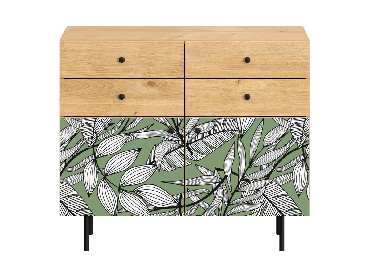 Корпусная мебель, с которой можно составить множество решений для гостиной, детской, кухни, спальни, прихожей, рабочей зоны. Комоды, шкафы, тумбы, столы, витрины, полки, серванты характеризуются универсальностью, многозадачностью, надёжными устойчивыми конструкциями. Имеют выразительный внешний вид, вдохновленный направлением ретро. Смотрятся легко и воздушно за счет деревянных ножек, минимального количества декоративных элементов, спокойных природных оттенков. Их можно использовать в качестве систем хранения, элементов для зонирования, фокусных точек. В дизайне ярко выражена доминанта прямых форм, графичности, лаконичных линий и элегантного исполнения. Что даёт пространству ощущение размеренности, сбалансированности, упорядоченности. Подходят интерьерам как с нейтральной базой, так и локациям с интенсивными цветовыми блоками. Индивидуальности добавят модели с оригинальными паттернами на фасадах. Предметы коллекции Frida гармонично впишутся в эклектичные и стилизованные интерьеры. Ручки входят в стоимость изделия. Высота опор 160 мм. Изображение, нанесенное на фасады, устойчиво к выцветанию, истиранию и влаге. Однако длительное воздействие воды, различных растворителей, спиртосодержащих жидкостей и высоких температур, увеличивают риск повреждения целостности покрытия. Поэтому при использовании необходимо соблюдать ряд правил: 1. Протирайте поверхность с рисунком влажной (но не мокрой) тканью. 2. Используйте мягкие ткани, например, салфетки для стекла или зеркал. 3. Не используйте для обработки поверхности с нанесенным на нее рисунком чистящие порошки и средства, в состав которых входят ацетон, растворитель или спирт. 4. Не используйте металлические губки и щетки с жесткой щетиной. 5. Избегайте ударов, падения, царапания, трения изделий с фотопечатью.