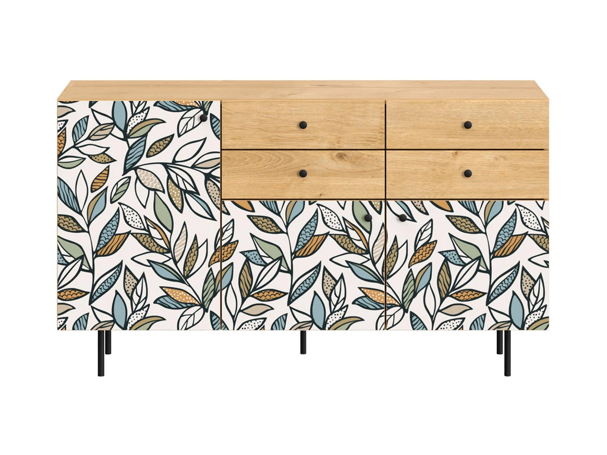 Корпусная мебель, с которой можно составить множество решений для гостиной, детской, кухни, спальни, прихожей, рабочей зоны. Комоды, шкафы, тумбы, столы, витрины, полки, серванты характеризуются универсальностью, многозадачностью, надёжными устойчивыми конструкциями. Имеют выразительный внешний вид, вдохновленный направлением ретро. Смотрятся легко и воздушно за счет деревянных ножек, минимального количества декоративных элементов, спокойных природных оттенков. Их можно использовать в качестве систем хранения, элементов для зонирования, фокусных точек. В дизайне ярко выражена доминанта прямых форм, графичности, лаконичных линий и элегантного исполнения. Что даёт пространству ощущение размеренности, сбалансированности, упорядоченности. Подходят интерьерам как с нейтральной базой, так и локациям с интенсивными цветовыми блоками. Индивидуальности добавят модели с оригинальными паттернами на фасадах. Предметы коллекции Frida гармонично впишутся в эклектичные и стилизованные интерьеры. Ручки входят в стоимость изделия. Высота опор 160 мм. Изображение, нанесенное на фасады, устойчиво к выцветанию, истиранию и влаге. Однако длительное воздействие воды, различных растворителей, спиртосодержащих жидкостей и высоких температур, увеличивают риск повреждения целостности покрытия. Поэтому при использовании необходимо соблюдать ряд правил: 1. Протирайте поверхность с рисунком влажной (но не мокрой) тканью. 2. Используйте мягкие ткани, например, салфетки для стекла или зеркал. 3. Не используйте для обработки поверхности с нанесенным на нее рисунком чистящие порошки и средства, в состав которых входят ацетон, растворитель или спирт. 4. Не используйте металлические губки и щетки с жесткой щетиной. 5. Избегайте ударов, падения, царапания, трения изделий с фотопечатью.