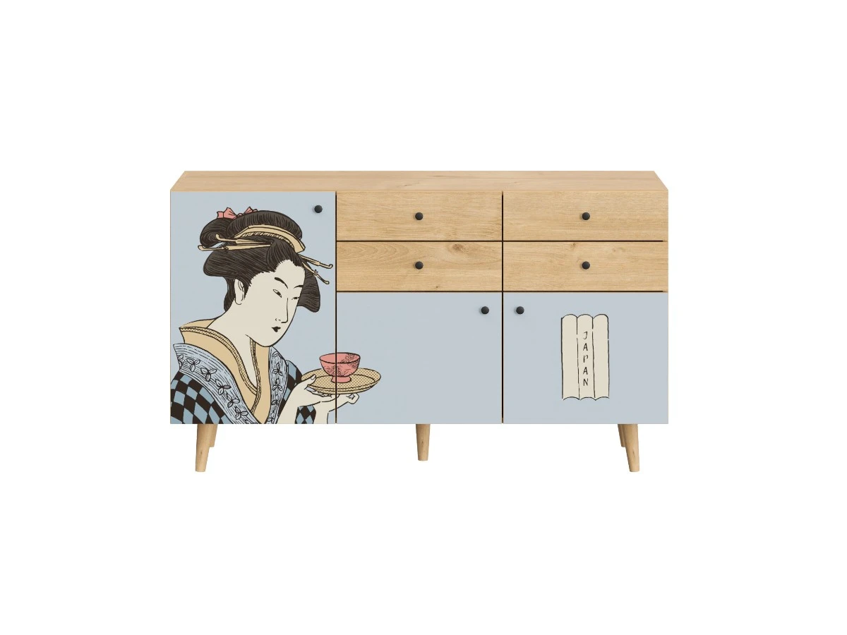 Корпусная мебель, с которой можно составить множество решений для гостиной, детской, кухни, спальни, прихожей, рабочей зоны. Комоды, шкафы, тумбы, столы, витрины, полки, серванты характеризуются универсальностью, многозадачностью, надёжными устойчивыми конструкциями. Имеют выразительный внешний вид, вдохновленный направлением ретро. Смотрятся легко и воздушно за счет деревянных ножек, минимального количества декоративных элементов, спокойных природных оттенков. Их можно использовать в качестве систем хранения, элементов для зонирования, фокусных точек. В дизайне ярко выражена доминанта прямых форм, графичности, лаконичных линий и элегантного исполнения. Что даёт пространству ощущение размеренности, сбалансированности, упорядоченности. Подходят интерьерам как с нейтральной базой, так и локациям с интенсивными цветовыми блоками. Индивидуальности добавят модели с оригинальными паттернами на фасадах. Предметы коллекции Frida гармонично впишутся в эклектичные и стилизованные интерьеры. Ручки входят в стоимость изделия. Высота опор 160 мм. Изображение, нанесенное на фасады, устойчиво к выцветанию, истиранию и влаге. Однако длительное воздействие воды, различных растворителей, спиртосодержащих жидкостей и высоких температур, увеличивают риск повреждения целостности покрытия. Поэтому при использовании необходимо соблюдать ряд правил: 1. Протирайте поверхность с рисунком влажной (но не мокрой) тканью. 2. Используйте мягкие ткани, например, салфетки для стекла или зеркал. 3. Не используйте для обработки поверхности с нанесенным на нее рисунком чистящие порошки и средства, в состав которых входят ацетон, растворитель или спирт. 4. Не используйте металлические губки и щетки с жесткой щетиной. 5. Избегайте ударов, падения, царапания, трения изделий с фотопечатью.