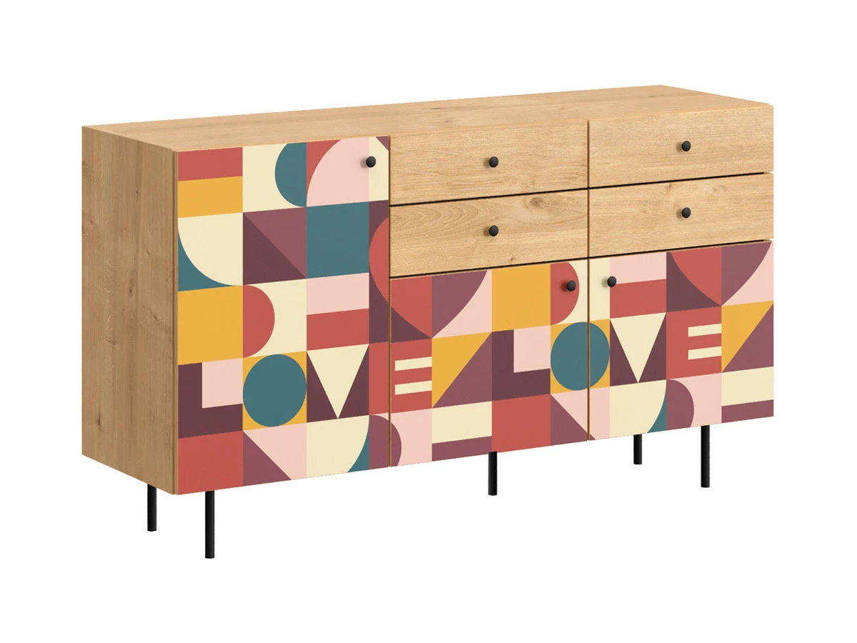 Корпусная мебель, с которой можно составить множество решений для гостиной, детской, кухни, спальни, прихожей, рабочей зоны. Комоды, шкафы, тумбы, столы, витрины, полки, серванты характеризуются универсальностью, многозадачностью, надёжными устойчивыми конструкциями. Имеют выразительный внешний вид, вдохновленный направлением ретро. Смотрятся легко и воздушно за счет деревянных ножек, минимального количества декоративных элементов, спокойных природных оттенков. Их можно использовать в качестве систем хранения, элементов для зонирования, фокусных точек. В дизайне ярко выражена доминанта прямых форм, графичности, лаконичных линий и элегантного исполнения. Что даёт пространству ощущение размеренности, сбалансированности, упорядоченности. Подходят интерьерам как с нейтральной базой, так и локациям с интенсивными цветовыми блоками. Индивидуальности добавят модели с оригинальными паттернами на фасадах. Предметы коллекции Frida гармонично впишутся в эклектичные и стилизованные интерьеры. Ручки входят в стоимость изделия. Высота опор 160 мм. Изображение, нанесенное на фасады, устойчиво к выцветанию, истиранию и влаге. Однако длительное воздействие воды, различных растворителей, спиртосодержащих жидкостей и высоких температур, увеличивают риск повреждения целостности покрытия. Поэтому при использовании необходимо соблюдать ряд правил: 1. Протирайте поверхность с рисунком влажной (но не мокрой) тканью. 2. Используйте мягкие ткани, например, салфетки для стекла или зеркал. 3. Не используйте для обработки поверхности с нанесенным на нее рисунком чистящие порошки и средства, в состав которых входят ацетон, растворитель или спирт. 4. Не используйте металлические губки и щетки с жесткой щетиной. 5. Избегайте ударов, падения, царапания, трения изделий с фотопечатью.