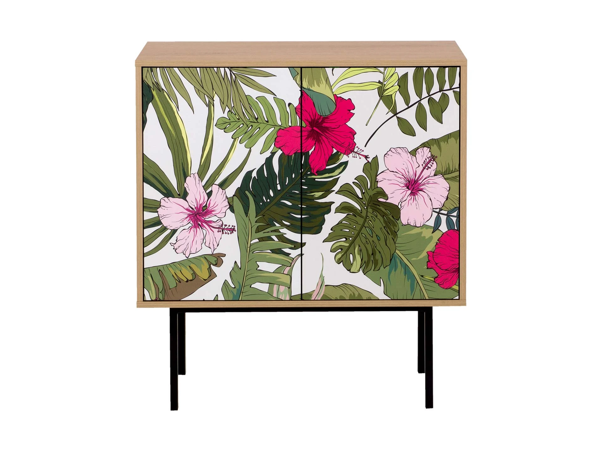Коллекция Boho Color — более 40 комбинаций изящных тумб, шкафов, консолей с оригинальными принтами на фасадах. Узор напечатан на ЛДСП, остаётся ярким и насыщенным спустя годы использования, не выцветает, не тускнеет, смотрится красиво и актуально. Изделия станут притягательной фишкой гостиной, спальни, детской, кабинета, творческой студии, лаундж и бьюти-зоны. За их насыщенными данными скрывается функциональность, которая гарантирует удобное размещение необходимых вещей. Характерная черта серии — тонкие, но прочные металлические ножки. Которые контрастируют с четкими прямоугольными формами, что придает мебели легкий воздушный вид. Поэтому предметы Boho Color не перегружают пространство. Экзотические мотивы, растительные орнаменты, тропические цветы, колоритные узоры рисуют расслабленную атмосферу отдыха и приключений. Добавляют интерьеру многослойности, объёма, сочности, теплоты, природной энергетики. С помощью этих деталей можно задать тон общей композиции, расставить необходимые акценты или подчеркнуть индивидуальность интерьера. Высота опор 27 см. Изображение, нанесенное на фасады, устойчиво к выцветанию, истиранию и влаге. Однако длительное воздействие воды, различных растворителей, спиртосодержащих жидкостей и высоких температур, увеличивают риск повреждения целостности покрытия. Поэтому при использовании необходимо соблюдать ряд правил: 1. Протирайте поверхность с рисунком влажной (но не мокрой) тканью. 2. Используйте мягкие ткани, например, салфетки для стекла или зеркал. 3. Не используйте для обработки поверхности с нанесенным на нее рисунком чистящие порошки и средства, в состав которых входят ацетон, растворитель или спирт. 4. Не используйте металлические губки и щетки с жесткой щетиной. 5. Избегайте ударов, падения, царапания, трения изделий с фотопечатью.