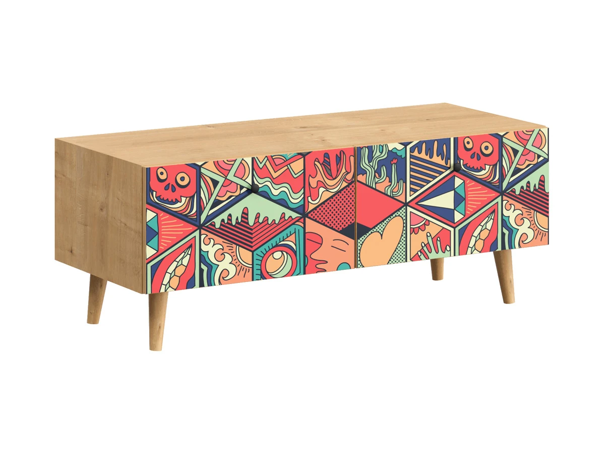 Корпусная мебель, с которой можно составить множество решений для гостиной, детской, кухни, спальни, прихожей, рабочей зоны. Комоды, шкафы, тумбы, столы, витрины, полки, серванты характеризуются универсальностью, многозадачностью, надёжными устойчивыми конструкциями. Имеют выразительный внешний вид, вдохновленный направлением ретро. Смотрятся легко и воздушно за счет деревянных ножек, минимального количества декоративных элементов, спокойных природных оттенков. Их можно использовать в качестве систем хранения, элементов для зонирования, фокусных точек. В дизайне ярко выражена доминанта прямых форм, графичности, лаконичных линий и элегантного исполнения. Что даёт пространству ощущение размеренности, сбалансированности, упорядоченности. Подходят интерьерам как с нейтральной базой, так и локациям с интенсивными цветовыми блоками. Индивидуальности добавят модели с оригинальными паттернами на фасадах. Предметы коллекции Frida гармонично впишутся в эклектичные и стилизованные интерьеры. Ручки входят в стоимость изделия. Высота опор 160 мм. Изображение, нанесенное на фасады, устойчиво к выцветанию, истиранию и влаге. Однако длительное воздействие воды, различных растворителей, спиртосодержащих жидкостей и высоких температур, увеличивают риск повреждения целостности покрытия. Поэтому при использовании необходимо соблюдать ряд правил: 1. Протирайте поверхность с рисунком влажной (но не мокрой) тканью. 2. Используйте мягкие ткани, например, салфетки для стекла или зеркал. 3. Не используйте для обработки поверхности с нанесенным на нее рисунком чистящие порошки и средства, в состав которых входят ацетон, растворитель или спирт. 4. Не используйте металлические губки и щетки с жесткой щетиной. 5. Избегайте ударов, падения, царапания, трения изделий с фотопечатью.