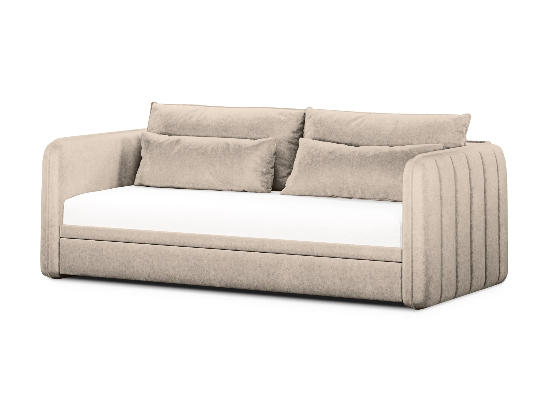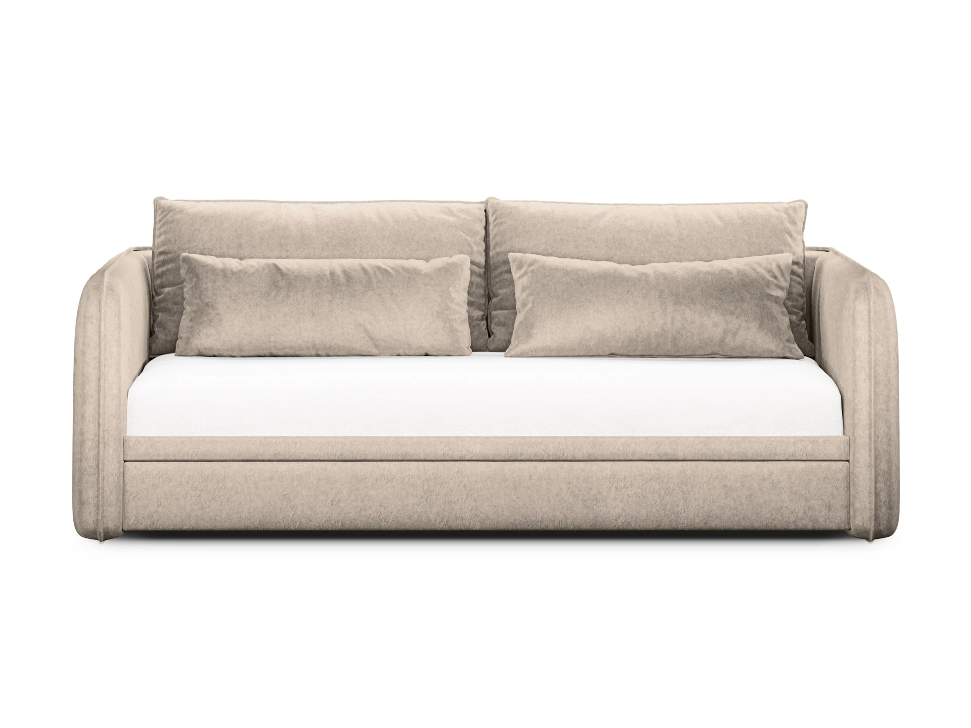 Кушетка Vicari — идеальный вариант для тех, кто любит лаконичный и современный стиль, а также ценит функциональные возможности. Кушетка может выполнять роль дивана, кровати, ёмкости для хранения. Подходит для размещения в любой локации. Практичное решение для детской или молодежной комнаты. Конструкция отличается четкой геометрий, главенством прямых линий с плавным закруглением углов. Что делает модель эргономичной и безопасной. Сиденье имеет комфортную глубину и высоту, спинка оснащена двумя большими подушками из мягкого пенополиуретана, что даёт дополнительную поддержку корпусу и обеспечивает максимально расслабленные ощущения. Подлокотники также укомплектованы прямоугольными подушками из синтепуха, расположение которых можно менять по желанию. Подушки и декоративные вертикальные строчки боковин придают кушетке уютный, объёмный и многослойный вид. Выкатная секция может быть дополнительным спальным местом с нагрузкой до 100 кг. и ящиком для хранения текстиля, сезонных вещей. Можно выбрать цвет и фактуру обивки, которая будет соответствовать вашим индивидуальным предпочтениям. Стилистически нейтральная и практичная кушетка Vicari поможет в реализации разных интерьерных решений и станет элегантным дополнением домашнего пространства. Кушетка установлена на пластмассовые опоры, высотой 20 мм. Имеют регулировку по высоте. Выкатной ящик установлен на колесные опоры. Может использоваться как дополнительное спальное место, размером 1900х900 мм. Выдвижение ящика производится за нижнюю кромку фасада. Лицевой чехол несъемный. Кушетка комплектуется набором подушек, состоящим из двух больших подушек и двух малых. Состав наполнения больших подушек: пенополиуретан (супермягкий), холлофайбер. Состав наполнения малых подушек: синтепух. Лицевые чехлы подушек – съемные. Матрасы приобретаются отдельно. Размер верхнего спального места: 2000х900мм. Максимальная нагрузка на спальное место – 120 кг. Рекомендуемая высота матраса верхнего спального места: 160 — 230 мм. Размер спального места нижнего выкатного ящика: 1900х900мм. Максимальная нагрузка на нижнее спальное место – 100 кг. Максимальная высота матраса нижнего выкатного ящика: 140 мм. Подушки входят в стоимость кушетки.