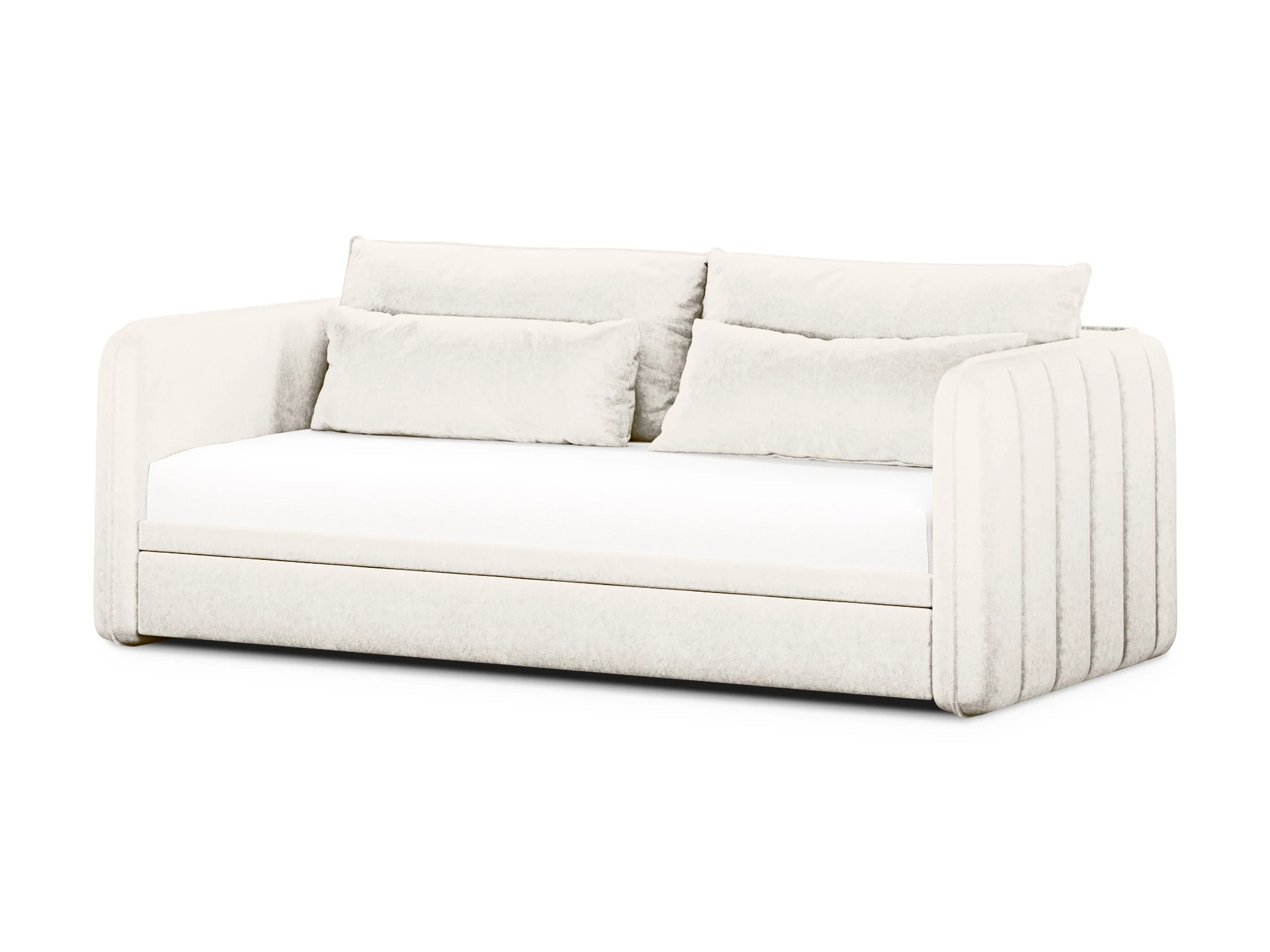 Кушетка Vicari — идеальный вариант для тех, кто любит лаконичный и современный стиль, а также ценит функциональные возможности. Кушетка может выполнять роль дивана, кровати, ёмкости для хранения. Подходит для размещения в любой локации. Практичное решение для детской или молодежной комнаты. Конструкция отличается четкой геометрий, главенством прямых линий с плавным закруглением углов. Что делает модель эргономичной и безопасной. Сиденье имеет комфортную глубину и высоту, спинка оснащена двумя большими подушками из мягкого пенополиуретана, что даёт дополнительную поддержку корпусу и обеспечивает максимально расслабленные ощущения. Подлокотники также укомплектованы прямоугольными подушками из синтепуха, расположение которых можно менять по желанию. Подушки и декоративные вертикальные строчки боковин придают кушетке уютный, объёмный и многослойный вид. Выкатная секция может быть дополнительным спальным местом с нагрузкой до 100 кг. и ящиком для хранения текстиля, сезонных вещей. Можно выбрать цвет и фактуру обивки, которая будет соответствовать вашим индивидуальным предпочтениям. Стилистически нейтральная и практичная кушетка Vicari поможет в реализации разных интерьерных решений и станет элегантным дополнением домашнего пространства. Кушетка установлена на пластмассовые опоры, высотой 20 мм. Имеют регулировку по высоте. Выкатной ящик установлен на колесные опоры. Может использоваться как дополнительное спальное место, размером 1900х900 мм. Выдвижение ящика производится за нижнюю кромку фасада. Лицевой чехол несъемный. Кушетка комплектуется набором подушек, состоящим из двух больших подушек и двух малых. Состав наполнения больших подушек: пенополиуретан (супермягкий), холлофайбер. Состав наполнения малых подушек: синтепух. Лицевые чехлы подушек – съемные. Матрасы приобретаются отдельно. Размер верхнего спального места: 2000х900мм. Максимальная нагрузка на спальное место – 120 кг. Рекомендуемая высота матраса верхнего спального места: 160 — 230 мм. Размер спального места нижнего выкатного ящика: 1900х900мм. Максимальная нагрузка на нижнее спальное место – 100 кг. Максимальная высота матраса нижнего выкатного ящика: 140 мм. Подушки входят в стоимость кушетки.