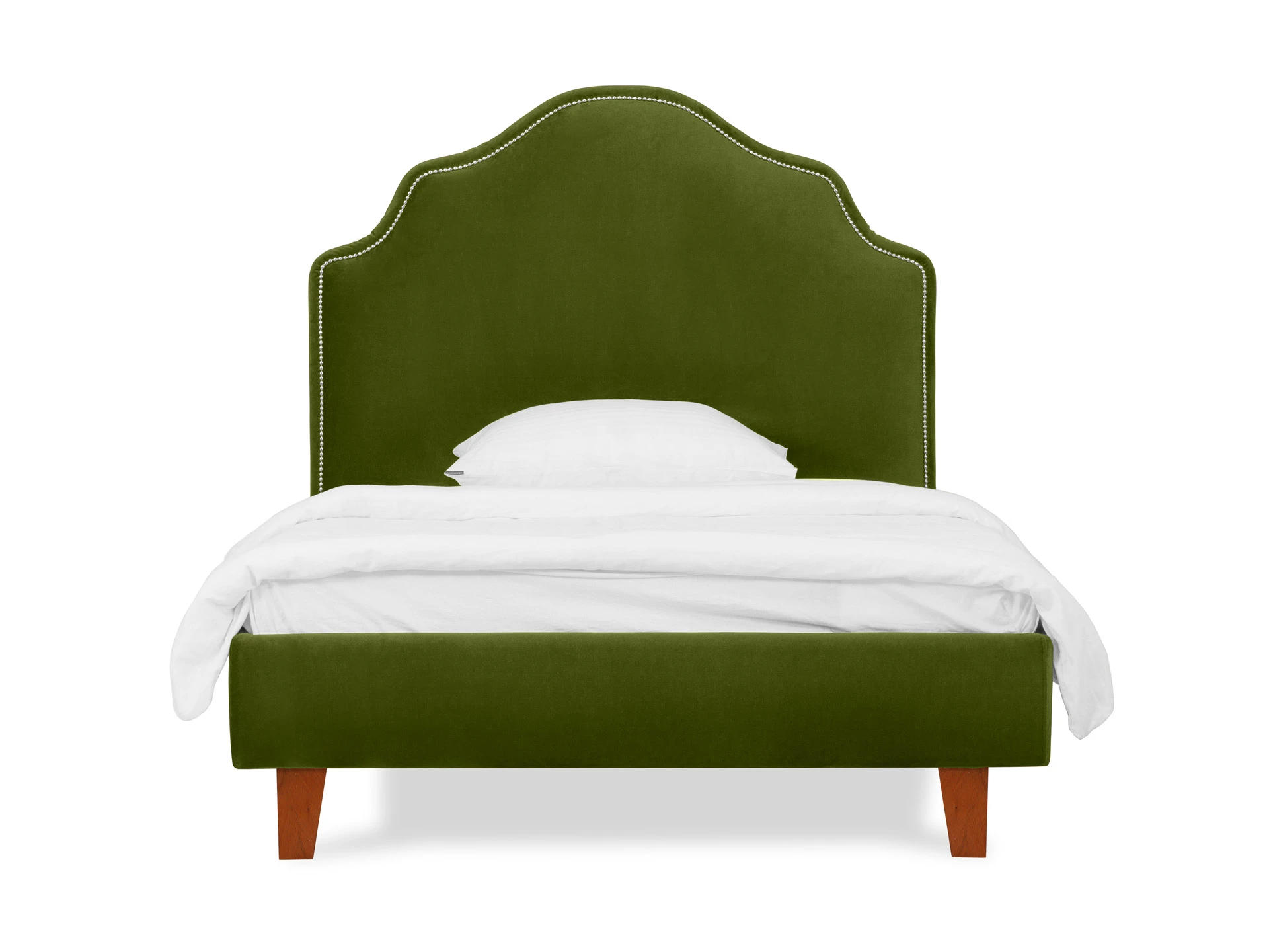 Кровать односпальная. Спинка кровати декорирована молдингом, установлена на пластмассовые опоры. Основание установлено на ножки из массива дерева и обрамлено мягкими царгами. Размер спального места: 1200х2000 мм.
