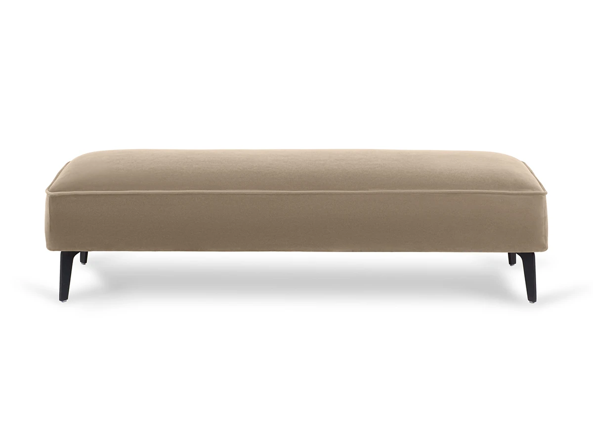 Лицевой чехол несъемный. В основании банкетки – металлические опоры высотой 150 мм, силиконовыми подпятниками, окрашены черной эмалью. В швы лицевого чехла по периметру вшит декоративный кант.