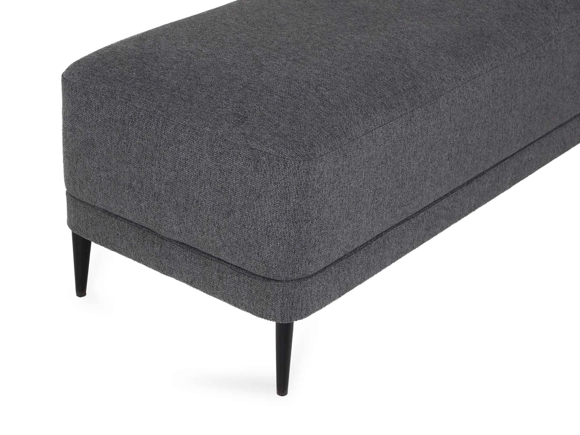 Каркас банкетки состоит из деревянных брусков хвойных пород. Сидение: пружинный блок, настил из войлока, слой пенополиуретана, слой синтепона. Лицевой чехол несъемный. В основании банкетки – металлические опоры высотой 130 мм, с пластиковыми подпятниками,окрашены эмалью.