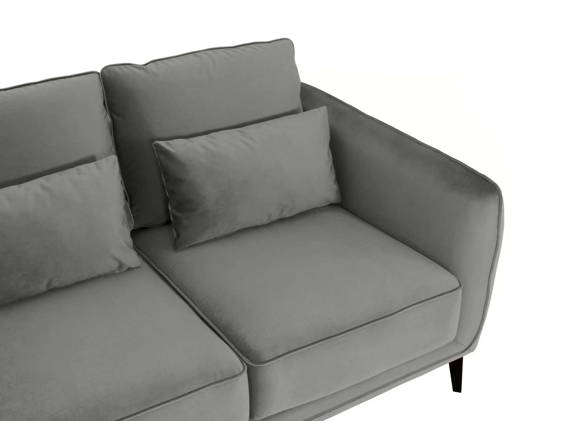 Элегантный диван с комфортной посадкой отличается безупречным стилем. Гармония лаконичных форм и мягких элементов. Сдержанный дизайн отлично впишется как в яркий интерьер, так и в помещение со строгой обстановкой. Спинка и подлокотники расположены на одном уровне. Такая конструкция создаёт границы уединённого пространства и отвечает за безмятежный отдых. Идеальным дополнением которого являются упругие подушки спинки.В основе каркаса – брус хвойных пород. Что обеспечивает надёжность и долгий срок службы дивана. За устойчивость отвечают металлические опоры высотой 150 мм, окрашенные эмалью. Имеет силиконовые подпятники, поэтому не оставят «следов» на напольном покрытии. Ножки смотрятся изящно. Благодаря им, легко делать уборку под основанием дивана. Диван укомплектован четырьмя подушками, которые входят. Подушки сиденья состоят из пружинного блока, войлочного настила, нескольких слоев пенополиуретана. Материал нового поколения гипоаллергенен и экологически безопасен. Его ячеистая структура обладает повышенной прочностью и «анатомической» памятью. Не проминается, моментально восстанавливает форму.Основной лицевой чехол несъёмный, чехлы подушек – съёмные. По периметру диван декорирован кантом, который придаёт завершённость его внешнему виду. Материал обивки – ткань с бархатной текстурой. Устойчива к истиранию, выпадению ворса. Смотрится благородно и подчёркивает уникальность модели. Диван Amsterdam – идеальное сочетание высокого качества материалов и эргономичности. Привнесёт в ваш дом чувство расслабления и уюта.