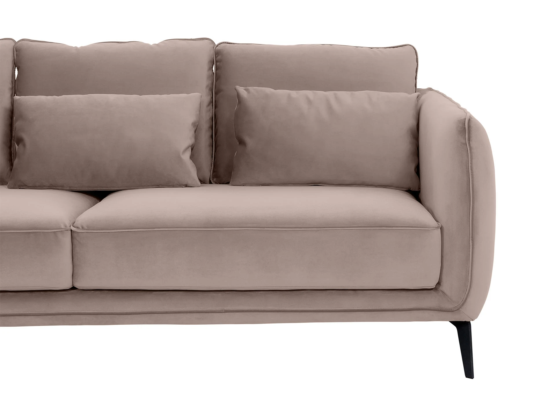 Элегантный диван с комфортной посадкой отличается безупречным стилем. Гармония лаконичных форм и мягких элементов. Сдержанный дизайн отлично впишется как в яркий интерьер, так и в помещение со строгой обстановкой. Спинка и подлокотники расположены на одном уровне. Такая конструкция создаёт границы уединённого пространства и отвечает за безмятежный отдых. Идеальным дополнением которого являются упругие подушки спинки.В основе каркаса – брус хвойных пород. Что обеспечивает надёжность и долгий срок службы дивана. За устойчивость отвечают металлические опоры высотой 150 мм, окрашенные эмалью. Диван укомплектован шестью подушками, которые входят. Имеют силиконовые подпятники, поэтому не оставят «следов» на напольном покрытии. Ножки смотрятся изящно. Благодаря им, легко делать уборку под основанием дивана.Подушки сиденья состоят из пружинного блока, войлочного настила, нескольких слоев пенополиуретана. Материал нового поколения гипоаллергенен и экологически безопасен. Его ячеистая структура обладает повышенной прочностью и «анатомической» памятью. Не проминается, моментально восстанавливает форму.Основной лицевой чехол несъёмный, чехлы подушек – съёмные. По периметру диван декорирован кантом, который придаёт завершённость его внешнему виду. Материал обивки – ткань с бархатной текстурой. Устойчива к истиранию, выпадению ворса. Смотрится благородно и подчёркивает уникальность модели. Диван Amsterdam – идеальное сочетание высокого качества материалов и эргономичности. Привнесёт в ваш дом чувство расслабления и уюта.