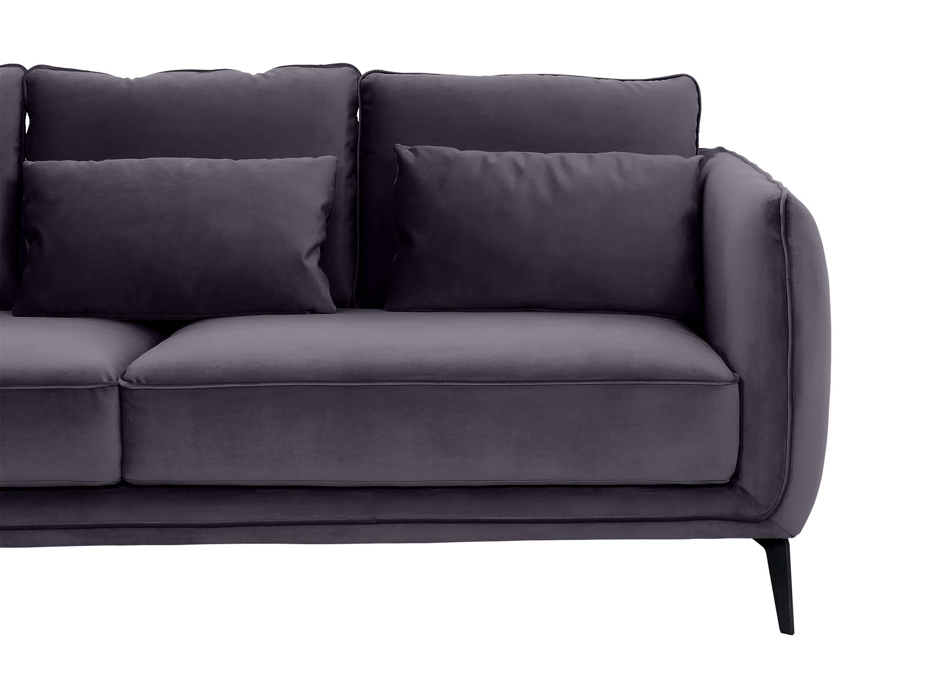 Элегантный диван с комфортной посадкой отличается безупречным стилем. Гармония лаконичных форм и мягких элементов. Сдержанный дизайн отлично впишется как в яркий интерьер, так и в помещение со строгой обстановкой. Спинка и подлокотники расположены на одном уровне. Такая конструкция создаёт границы уединённого пространства и отвечает за безмятежный отдых. Идеальным дополнением которого являются упругие подушки спинки.В основе каркаса – брус хвойных пород. Что обеспечивает надёжность и долгий срок службы дивана. За устойчивость отвечают металлические опоры высотой 150 мм, окрашенные эмалью. Диван укомплектован шестью подушками, которые входят. Имеют силиконовые подпятники, поэтому не оставят «следов» на напольном покрытии. Ножки смотрятся изящно. Благодаря им, легко делать уборку под основанием дивана.Подушки сиденья состоят из пружинного блока, войлочного настила, нескольких слоев пенополиуретана. Материал нового поколения гипоаллергенен и экологически безопасен. Его ячеистая структура обладает повышенной прочностью и «анатомической» памятью. Не проминается, моментально восстанавливает форму.Основной лицевой чехол несъёмный, чехлы подушек – съёмные. По периметру диван декорирован кантом, который придаёт завершённость его внешнему виду. Материал обивки – ткань с бархатной текстурой. Устойчива к истиранию, выпадению ворса. Смотрится благородно и подчёркивает уникальность модели. Диван Amsterdam – идеальное сочетание высокого качества материалов и эргономичности. Привнесёт в ваш дом чувство расслабления и уюта.