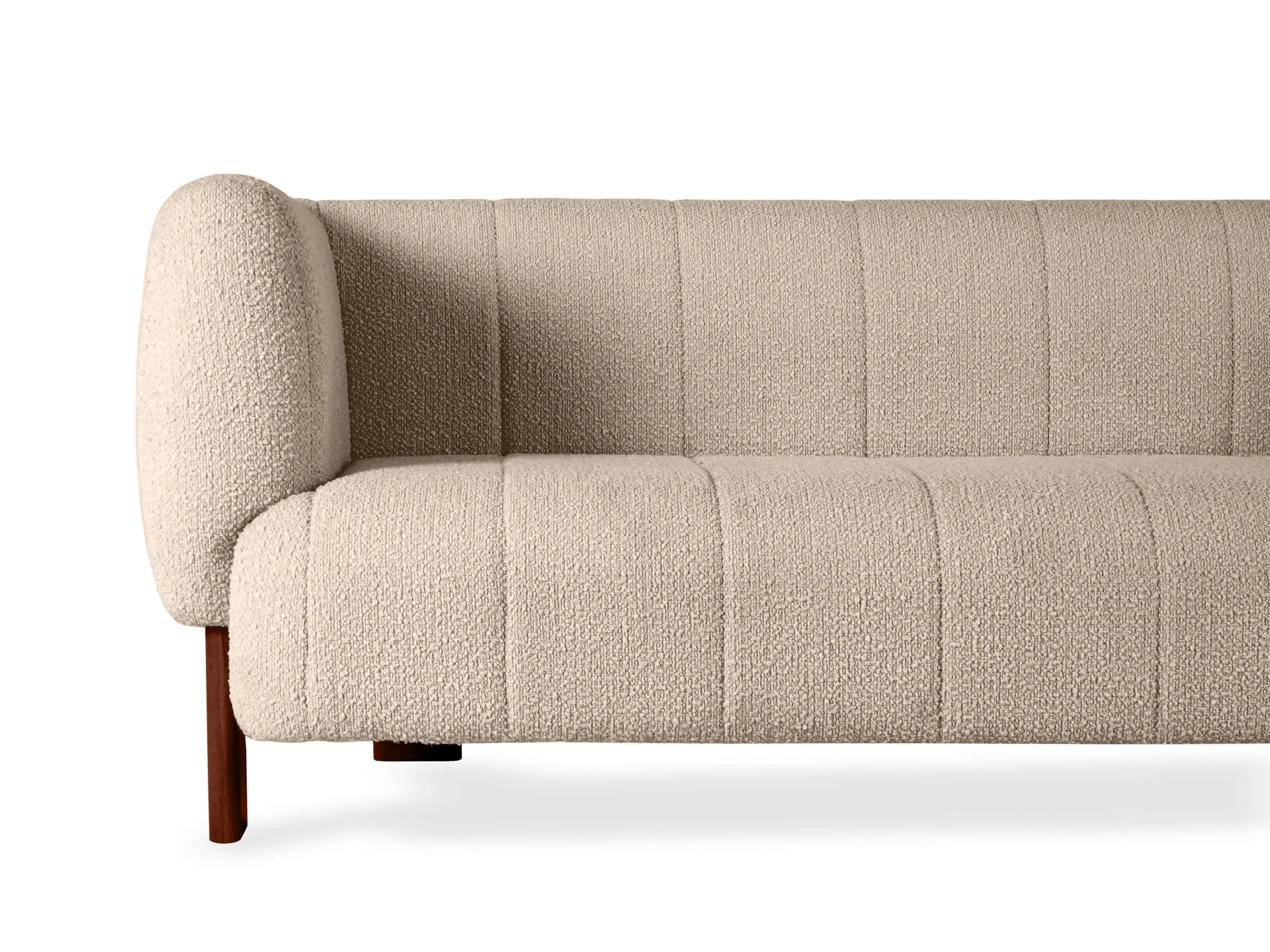 Диван Cassis — привлекательная минималистичная модель с объёмным силуэтом. Индивидуальность заключается в высоких подлокотниках, расположенных на одном уровне со спинкой. Такая конфигурация поддерживает большее ощущение комфорта, уединенности. Также поверхность дивана украшена отделочной вертикальной строчкой. «Стёжка» создает стильные геометрические акценты, добавляет плавности, округлых очертаний. И обеспечивает равномерное натяжение ткани по всему периметру. Это увеличивает износоустойчивость, срок службы материалов. Основательность и надежность кроется в каркасе из бруса хвойных пород. Сиденье состоит из пружин-змеек, нескольких слоев пенополиуретана и войлока. Материалы не деформируются, мгновенно восстанавливают форму. Обеспечат вам безмятежный отдых на идеальной поверхности. В меру упругой и мягкой. Опоры выполнены из бука. Упрощают уборку и поддерживают визуальную легкость конструкции. Диван Cassis легко адаптируется для различных пространств: как домашних, так и общественных. Вы можете выбрать цвет обивки и опор, создав индивидуальный дизайн, который гармонично впишется в ваш интерьер. Лицевой чехол изделия – простеганный, несъемный. Опоры выполнены из массива бука, представлены в трех цветах: светлый, черный, орех. Подпятники – пластиковые с фетровыми накладками.